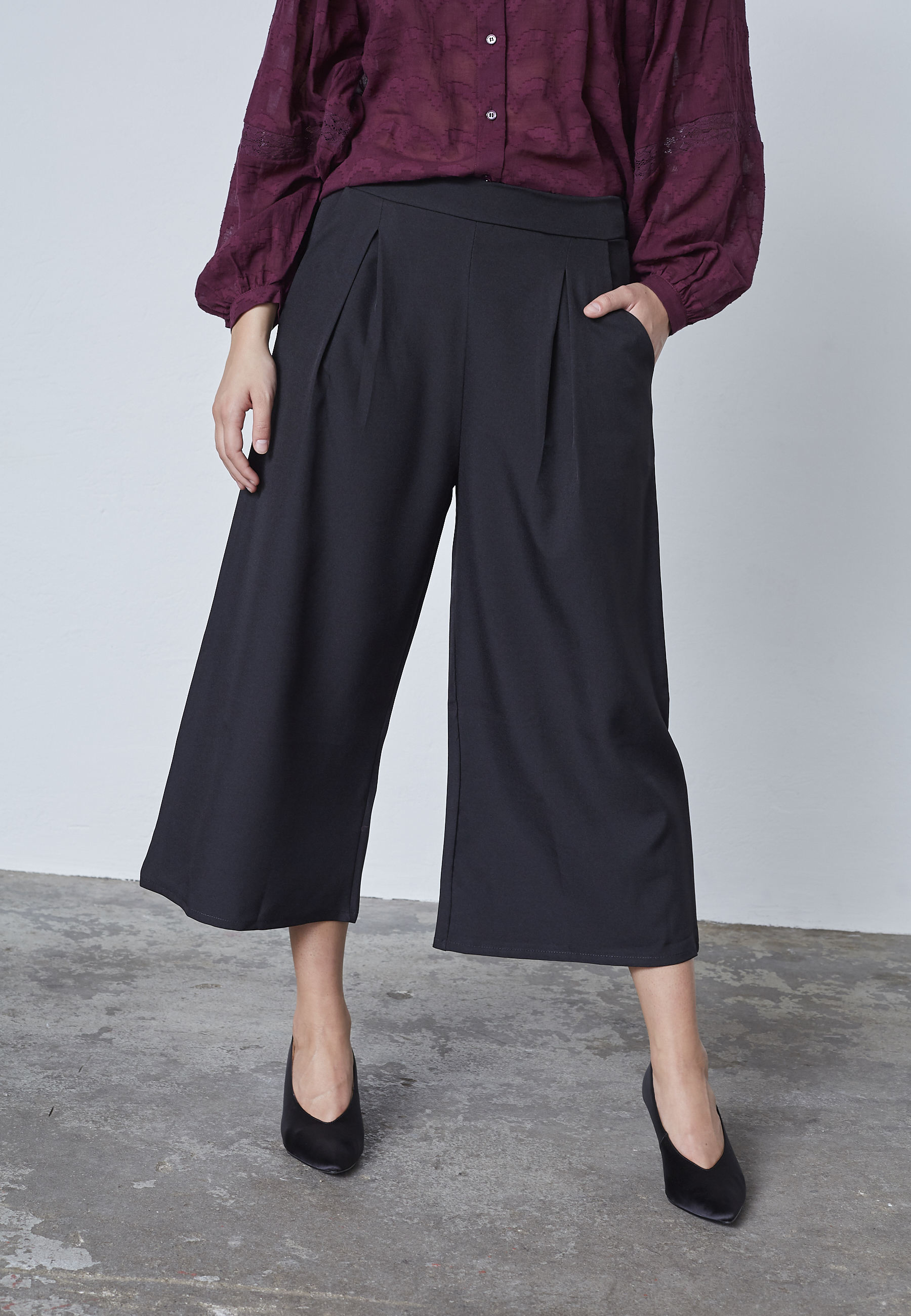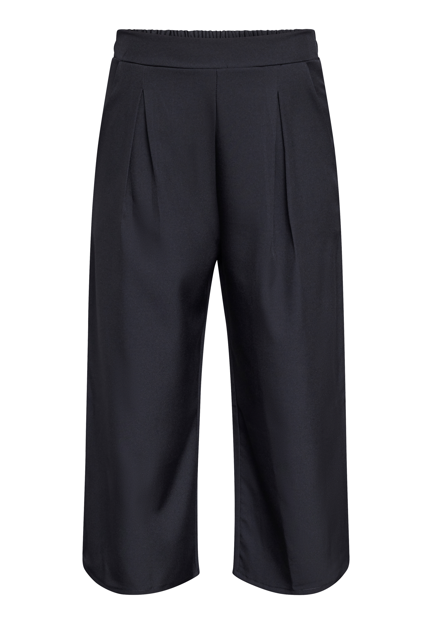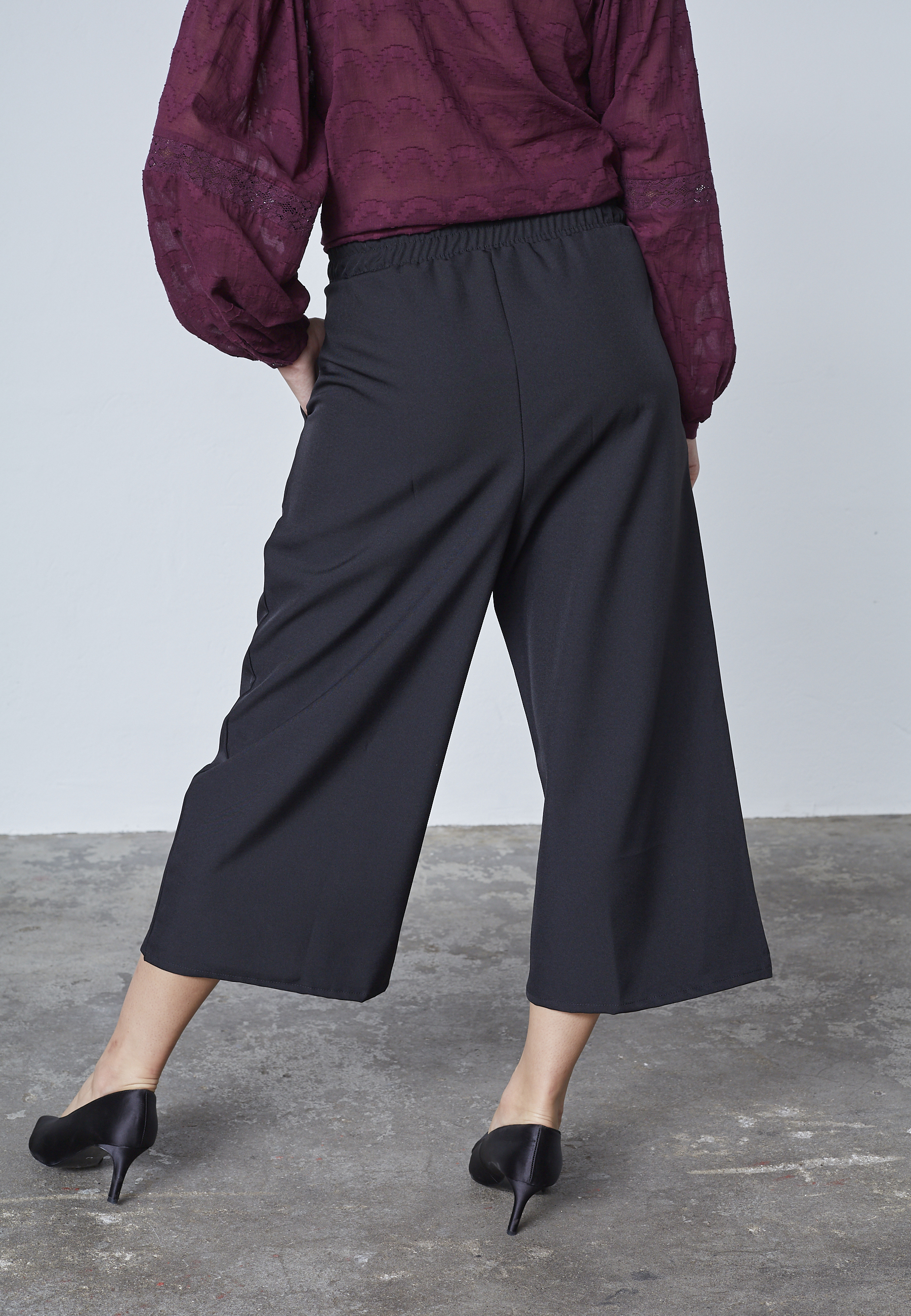 GEFA-PA er vide, cropped bukser med læg, elastisk linning og sidelommer. Løs pasform. Modellen har en str. S på.