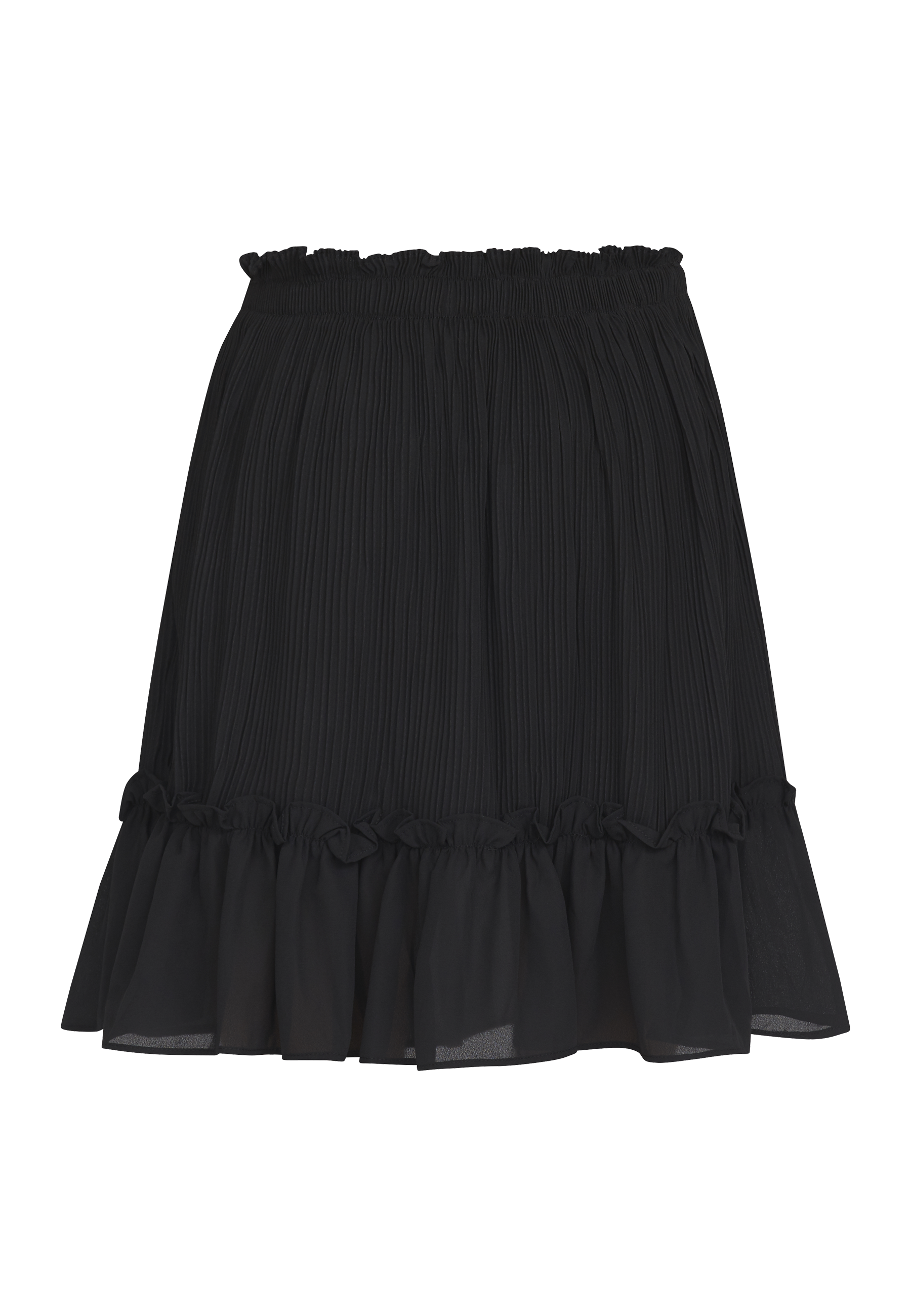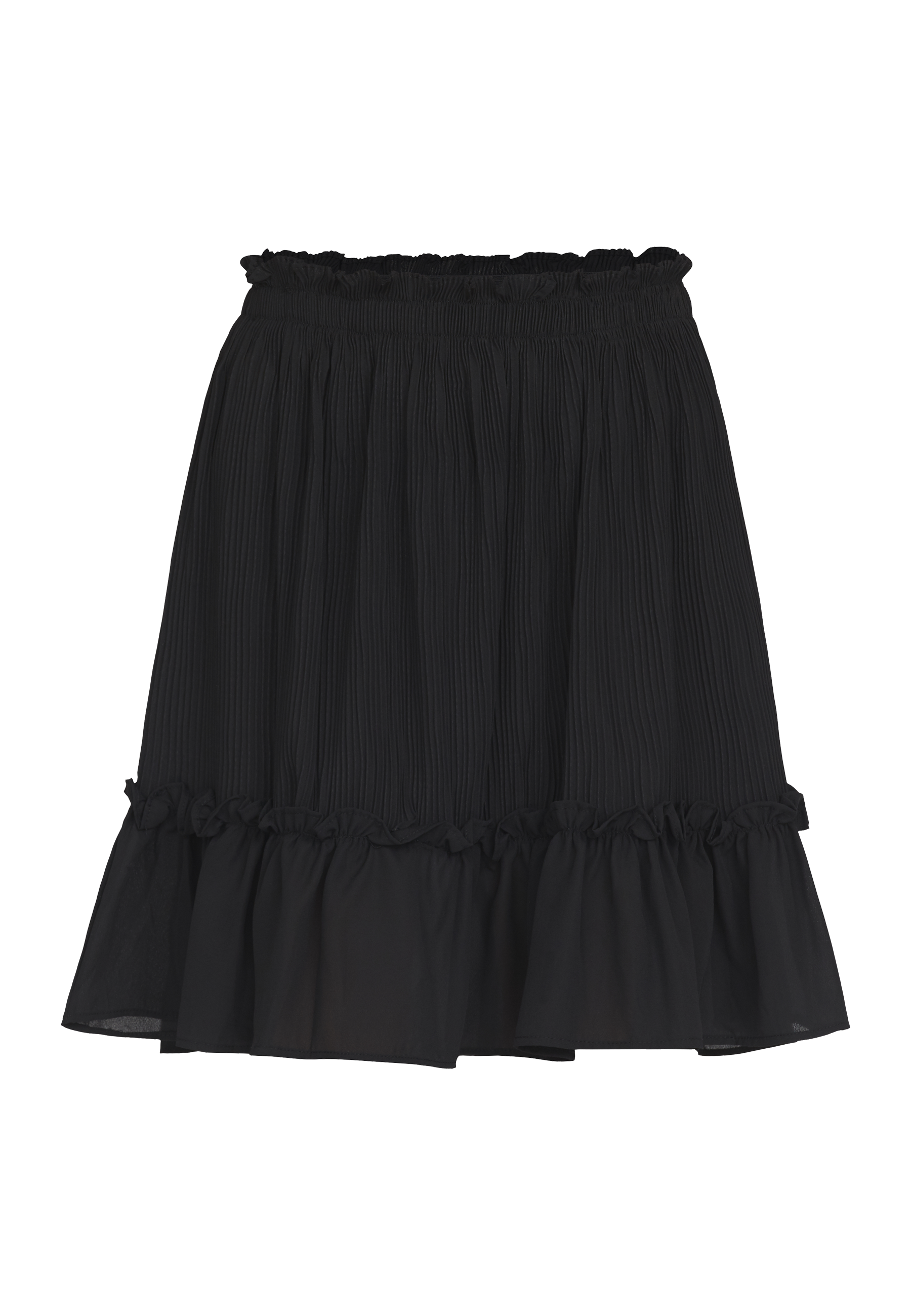 GLORY-SK er en løstsiddende ensfarvet nederdel med flæser. Modellen har en størrelse S på.