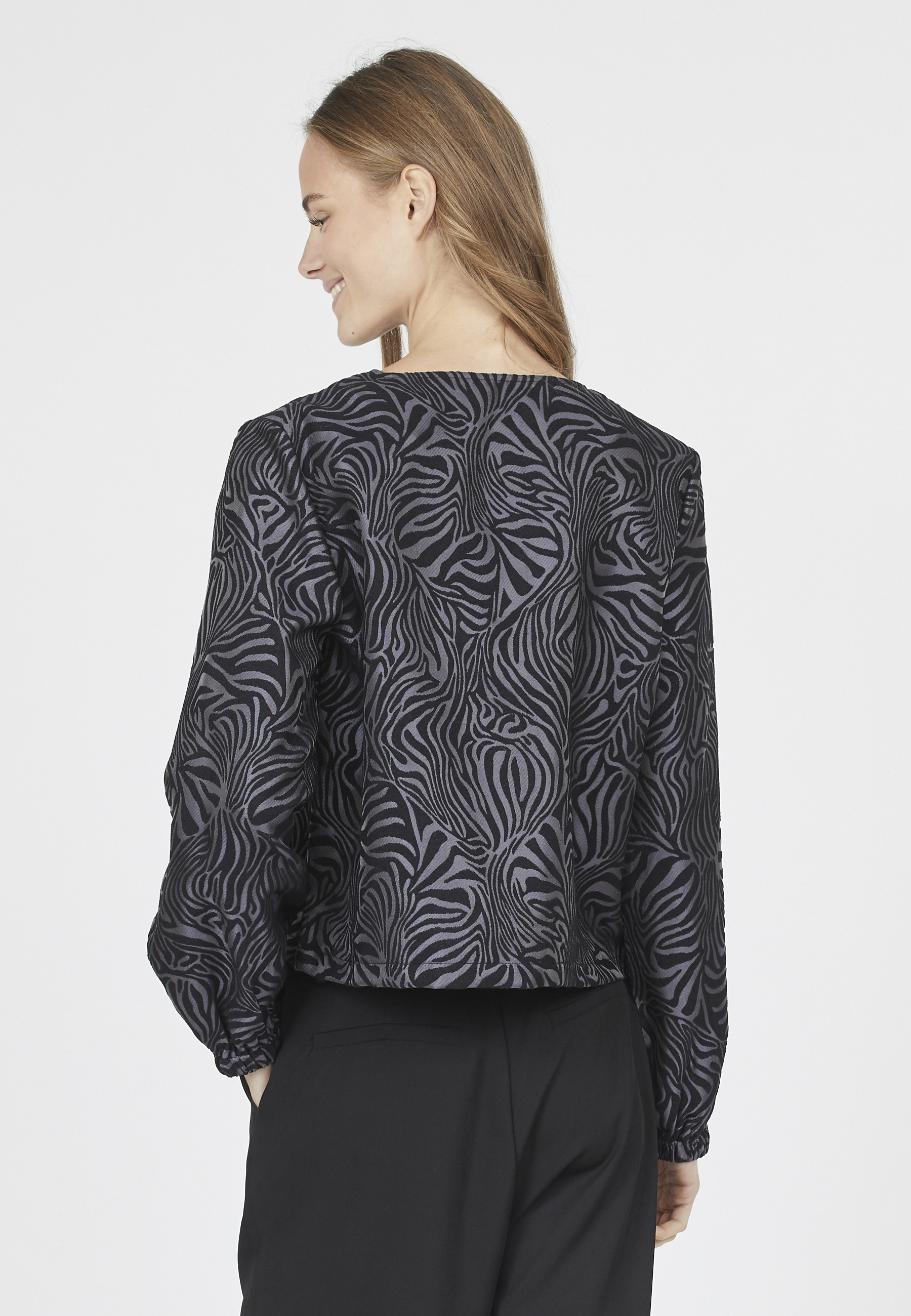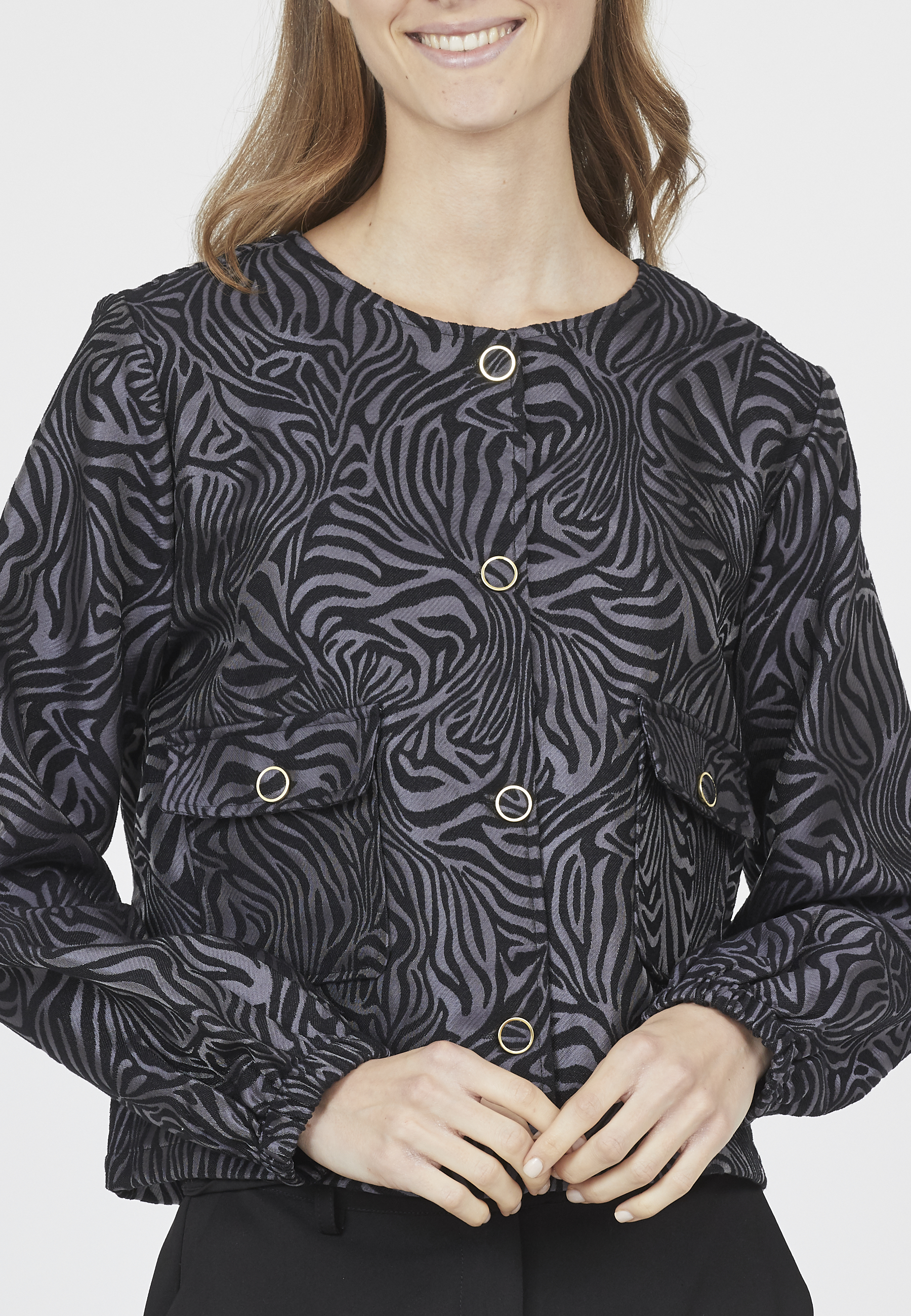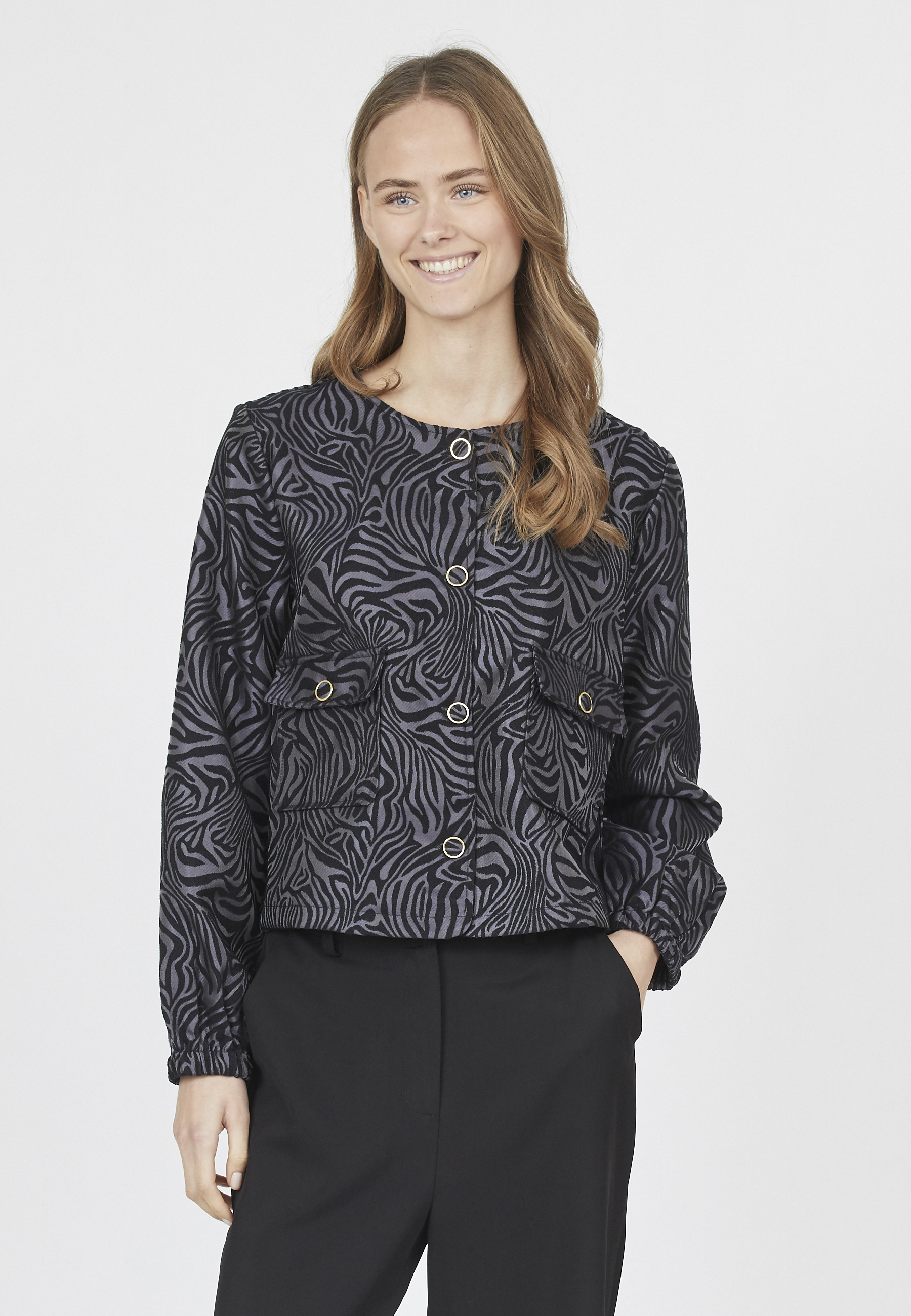 VEKIS-JA er en mønsteret, sofistikeret og kraveløs blazer. Blazeren har en normal pasform med lommer på brystet og knappelukning. Modellen har en størrelse S på.
