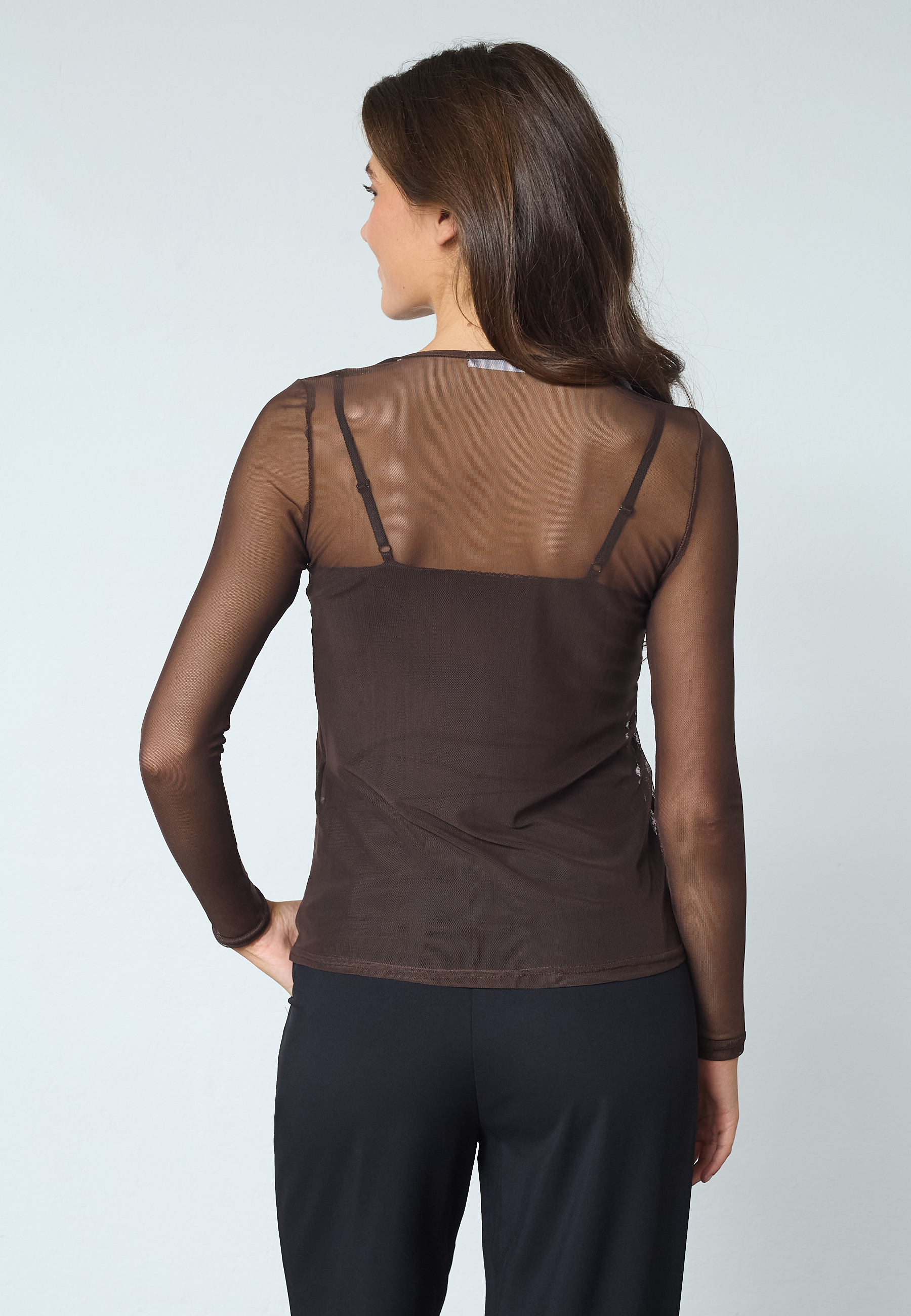NEW GANI-22 er en langærmet mesh overdel. Yderlaget er transparent mesh. Halsudskæringen er bådformet. Modellen har en str. S på og er 175 cm høj