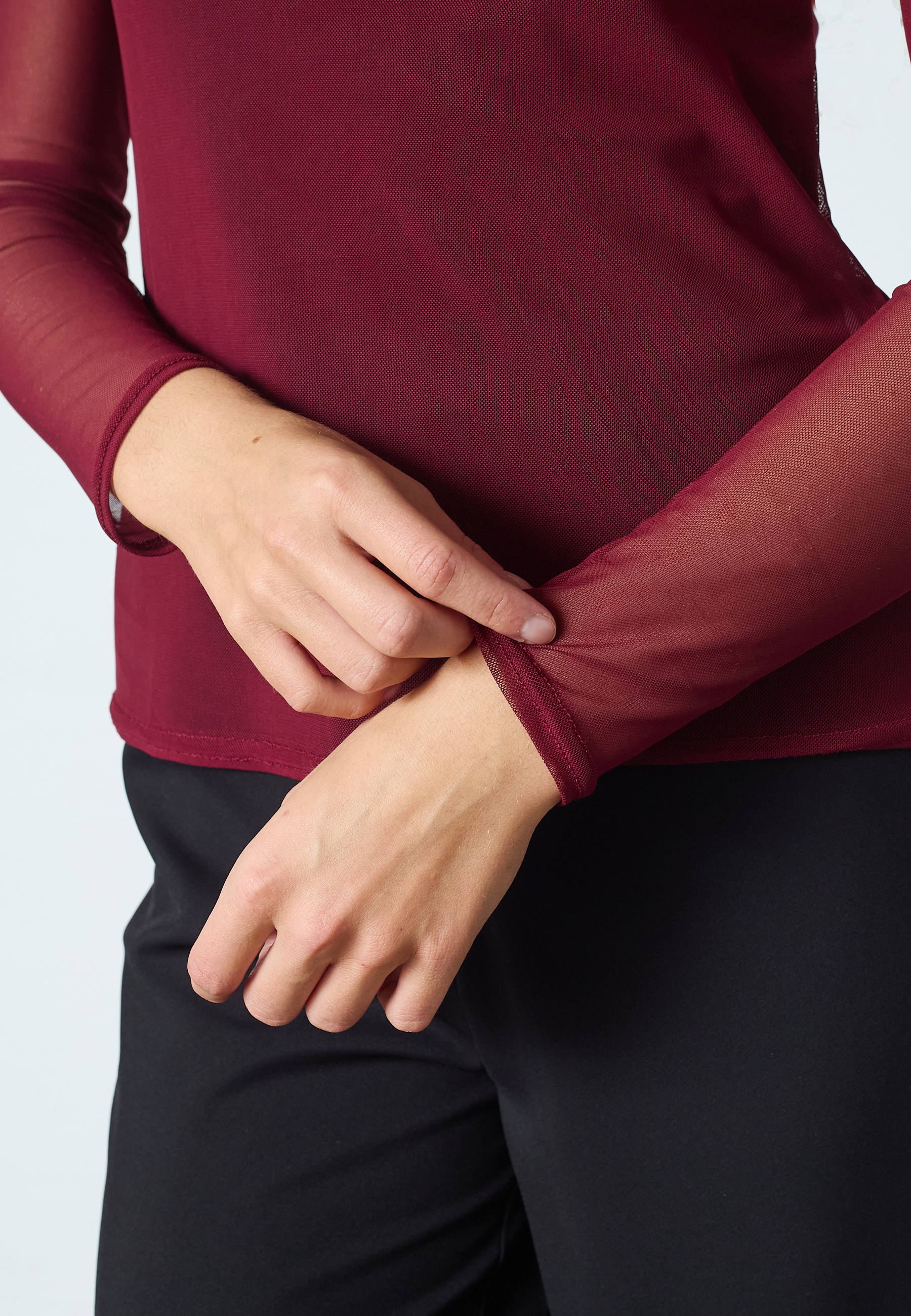 NEW GANI-22 er en langærmet mesh overdel. Yderlaget er transparent mesh. Halsudskæringen er bådformet. Modellen har en str. S på og er 175 cm høj