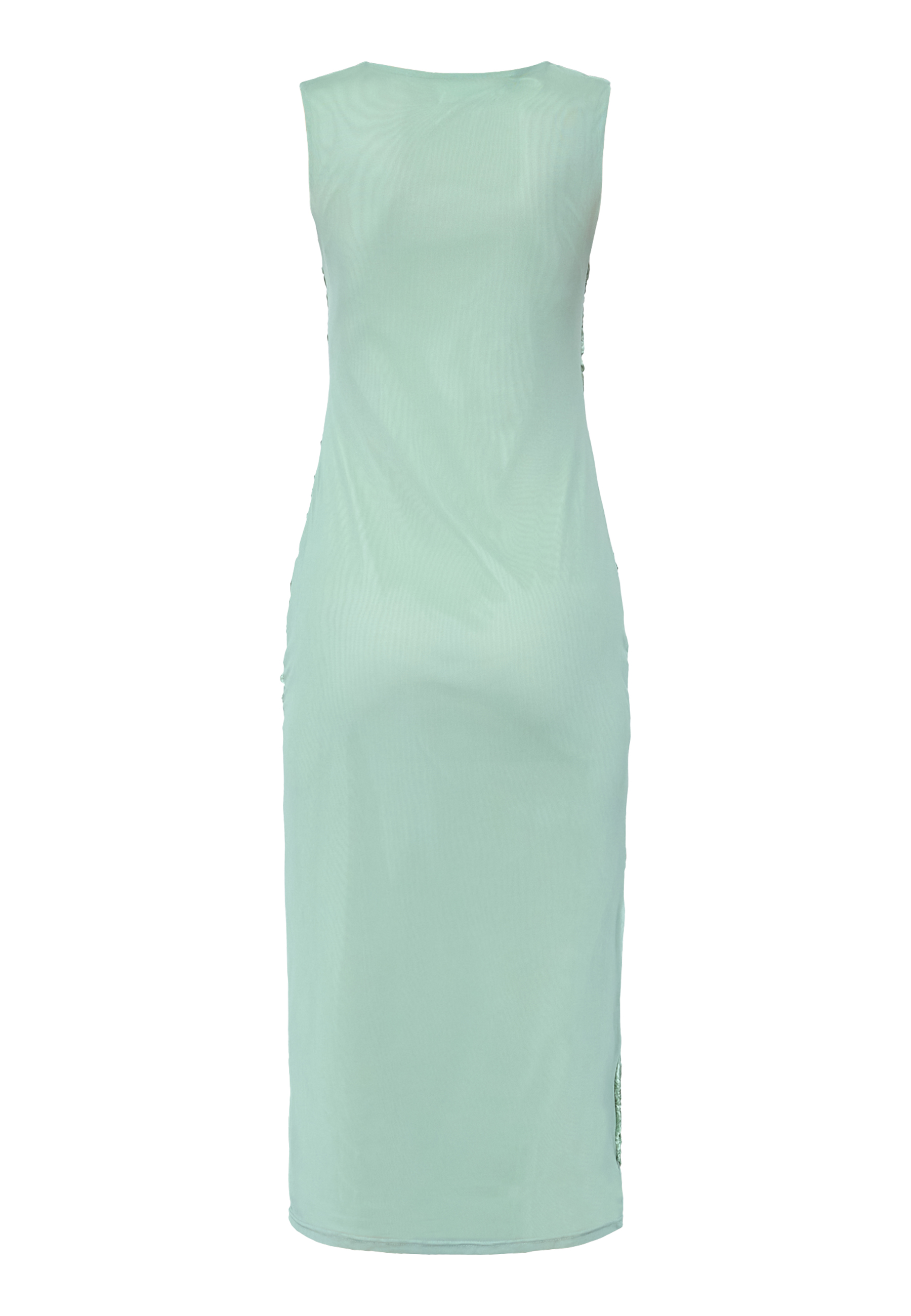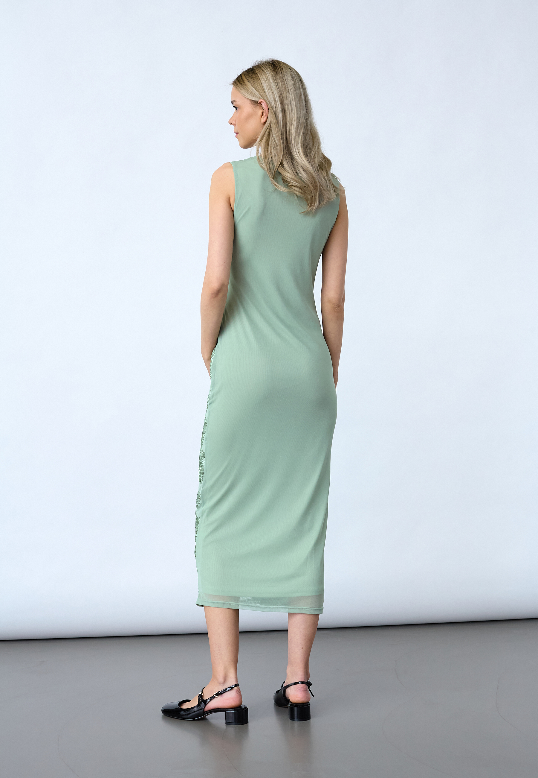 SIS-DR er en figursyet, ærmeløs kjole i en ankellang pasform. Kjolen er dekoreret med broderede blomstermotiver og har en rund halsudskæring. Modellen har en str. S på.