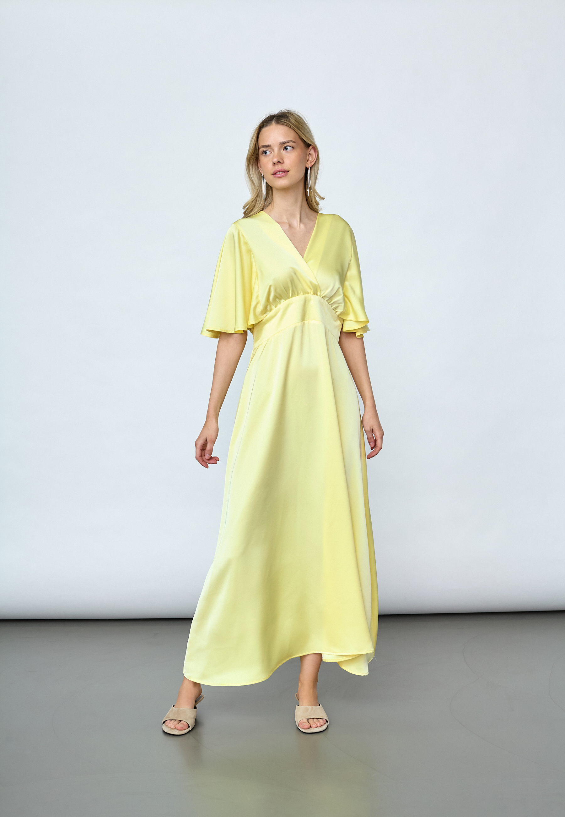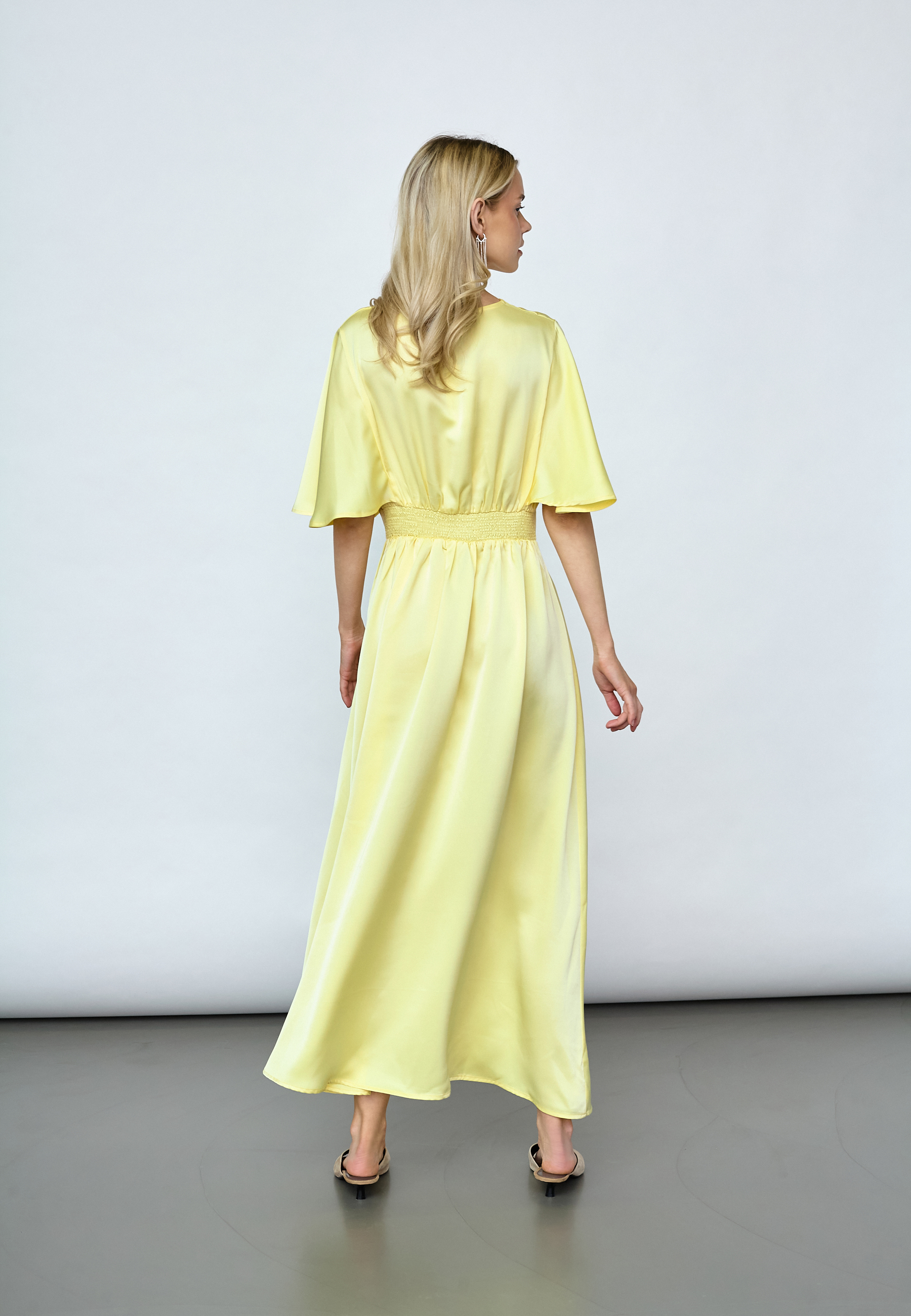 GISELA-DR er en smuk og festlig kjole med flotte detaljer. Den har en feminin pasform med smock på ryggen. Kjolen har v-udskæring og løse ærmer. Modellen har str. S på.