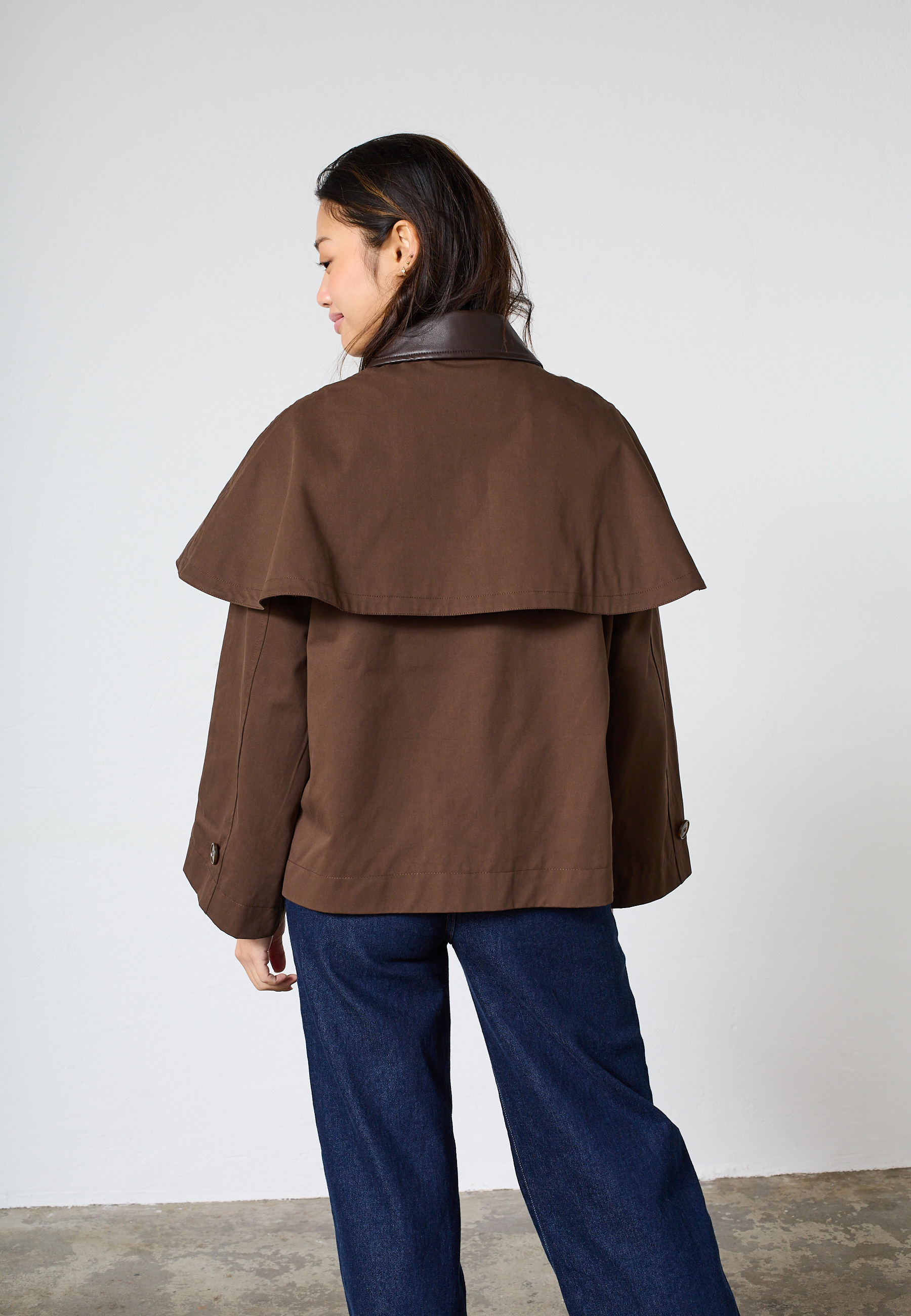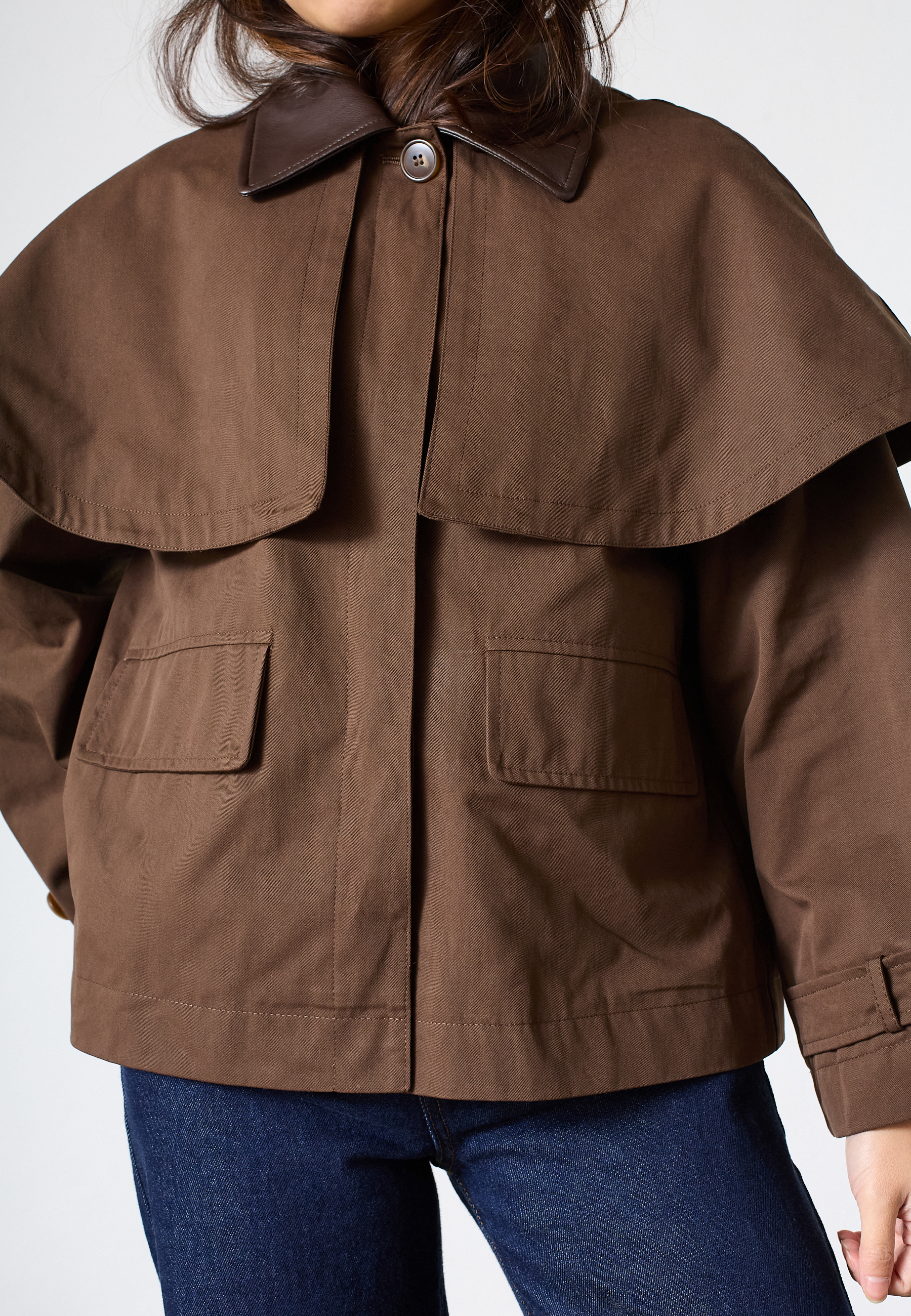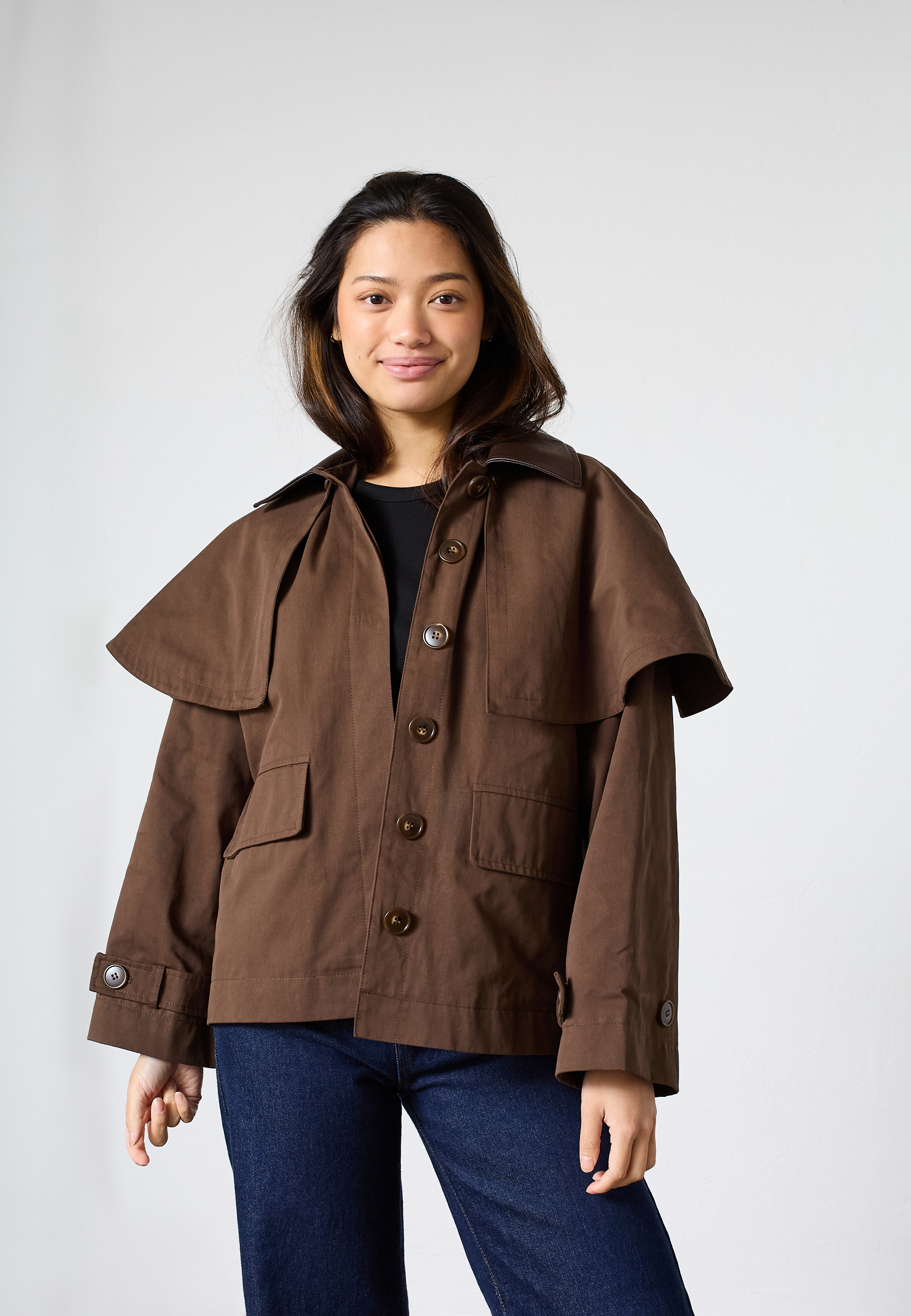 LENA-JA er en utility-inspirerede jakke med et moderne oversized snit. Jakken har en klassisk krave, en gennemknappet front med skjult lukning og markante lommedetaljer. Modellen har en str. S på og er 171 cm høj.