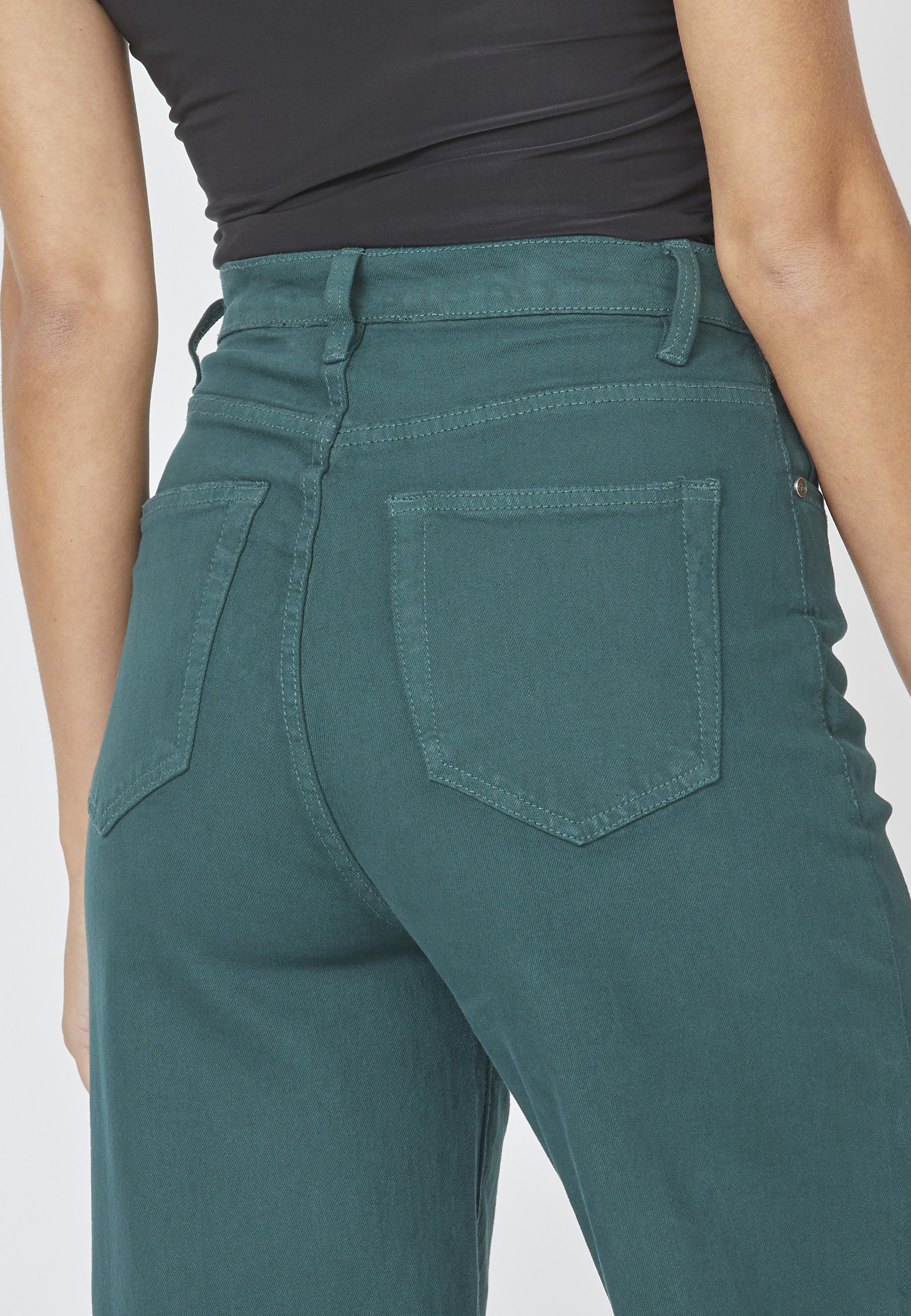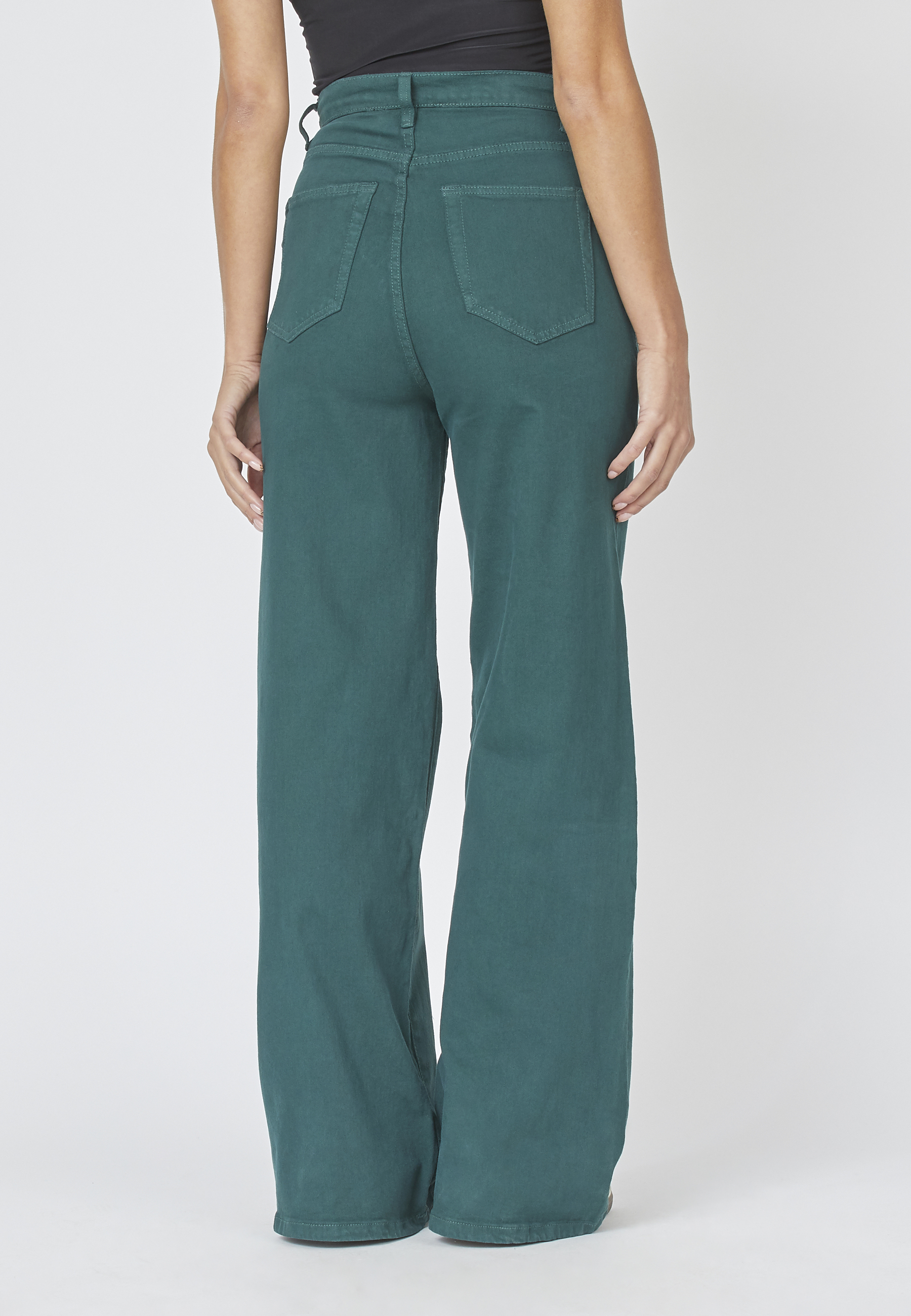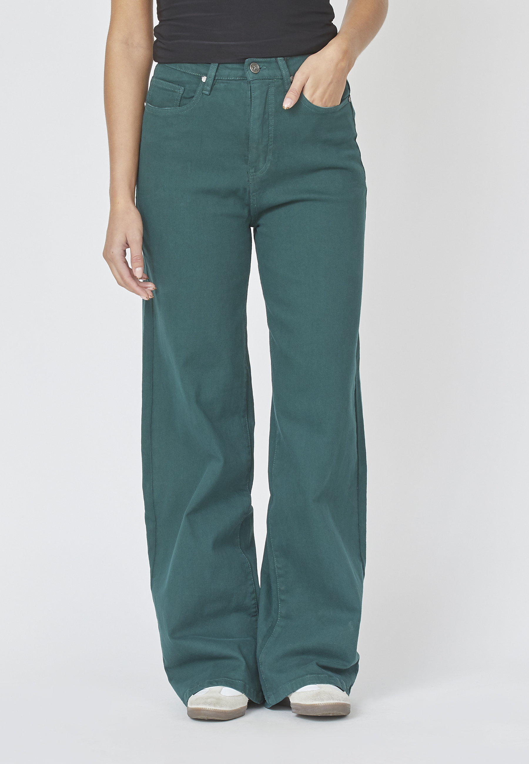 OWI-W.JE4 er en trendy denimbuks med brede ben og en høj talje. Buksen har 5 lommer, bæltestropper og lynlåslukning foran.