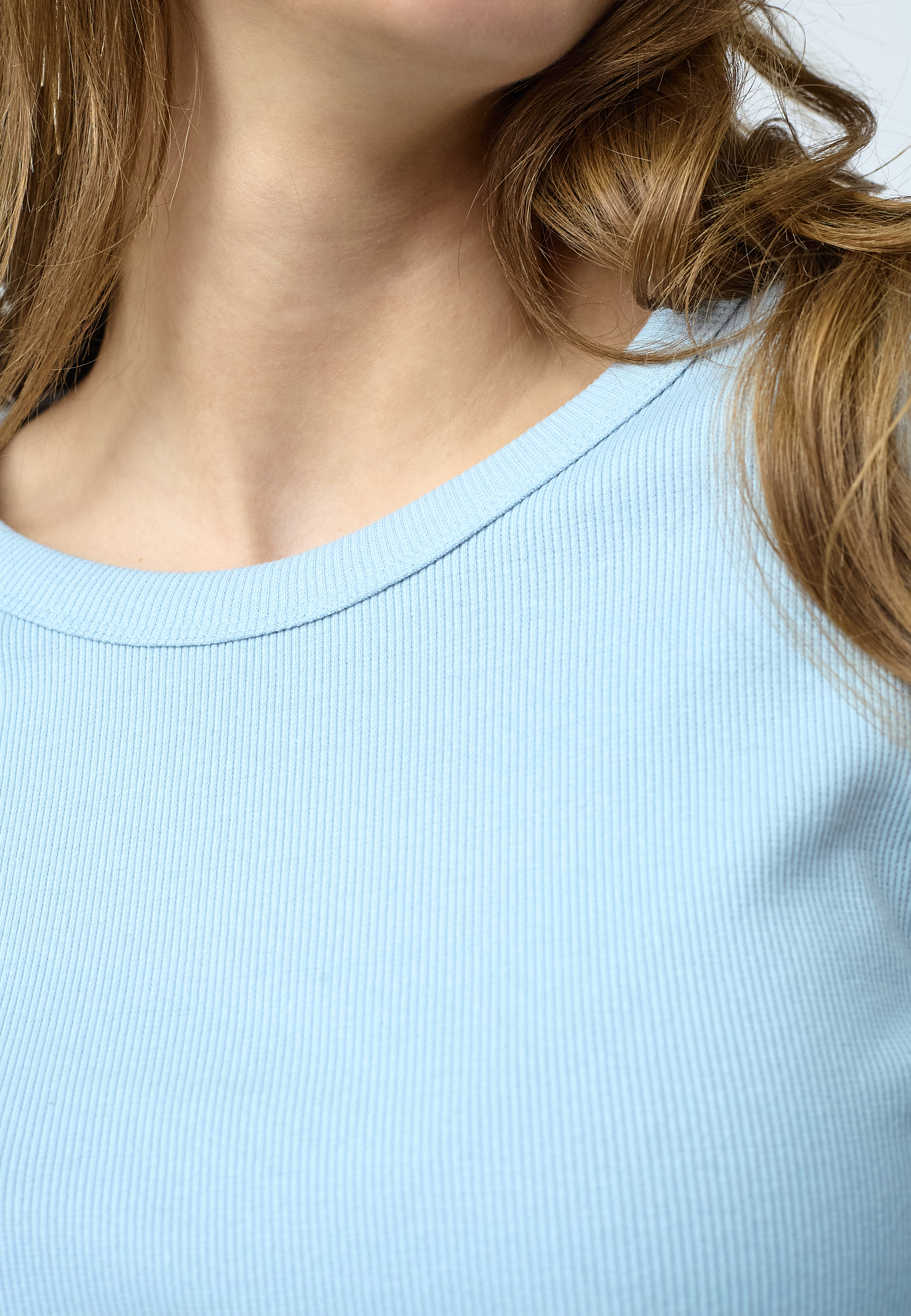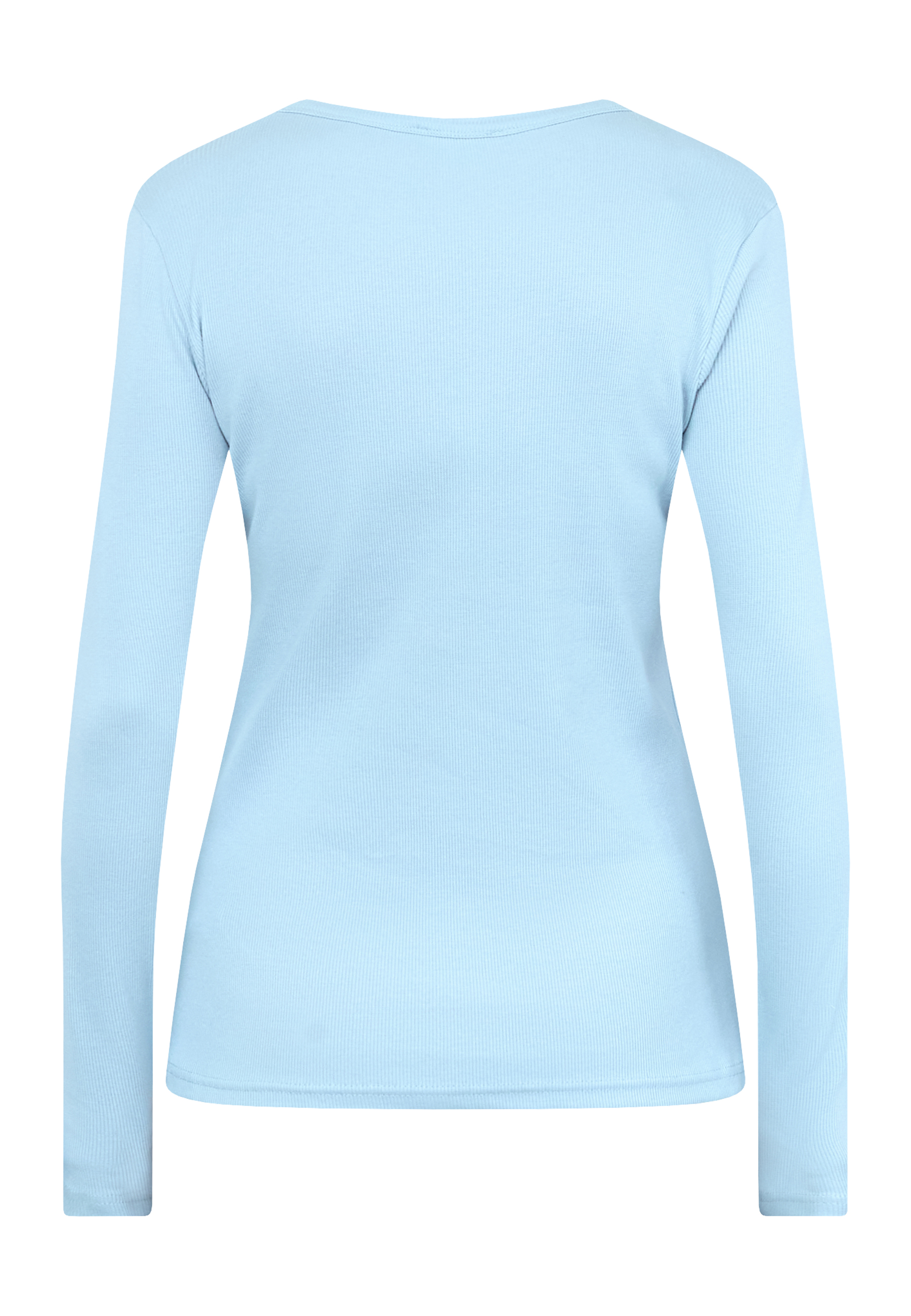 EIKE-LS er en ensfarvet og tætsiddende rib bluse. Blusen har en rund hals og lange ærmer. Modellen har en str. S på.
