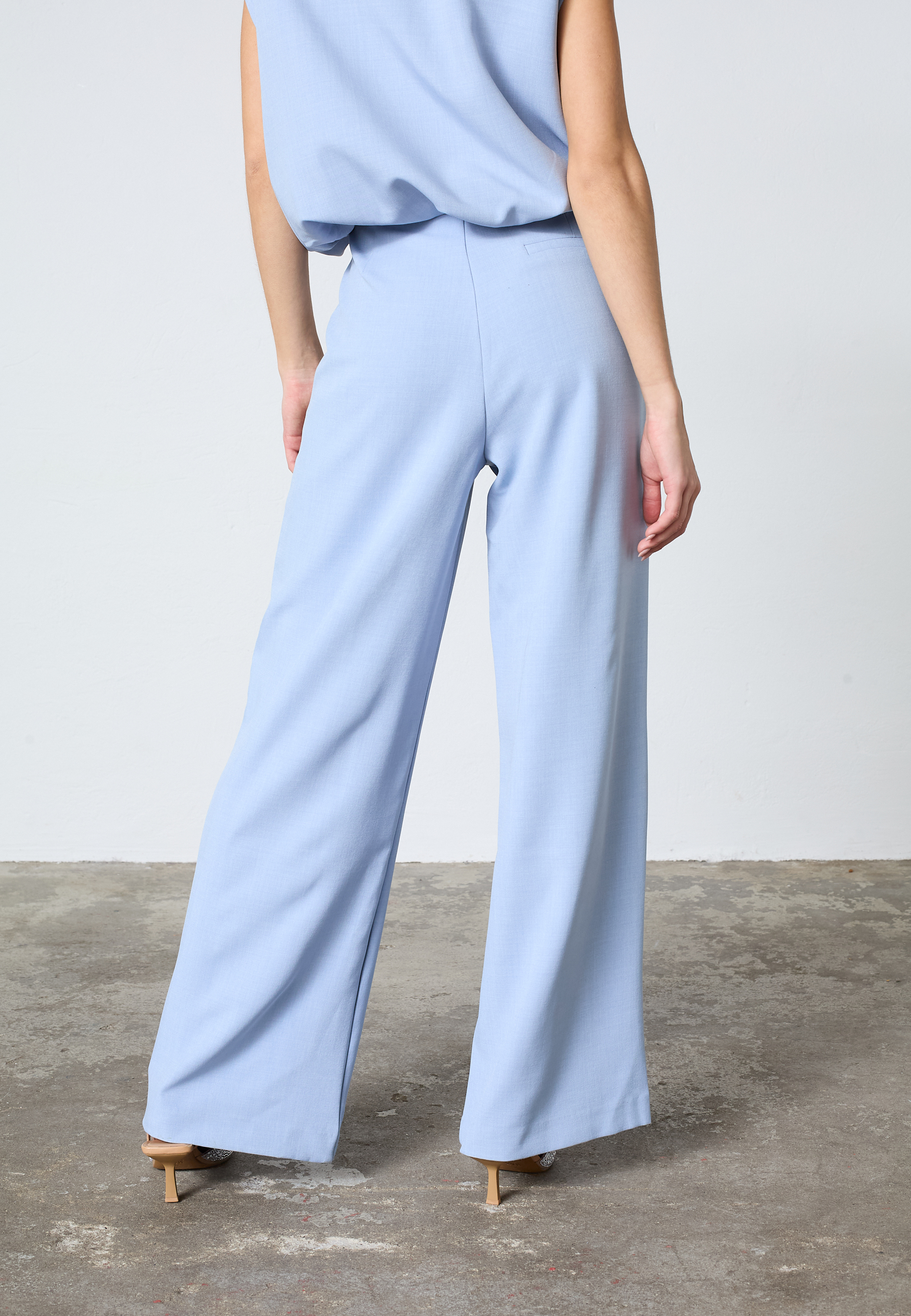 GREAT-PA3 er en løs, habitbuks med vide ben og et stilrent snit. Den har en behagelig pasform med læg foran og praktiske sidelommer, perfekt til et elegant og afslappet look. Modellen har en str. S på og er 171 cm høj.