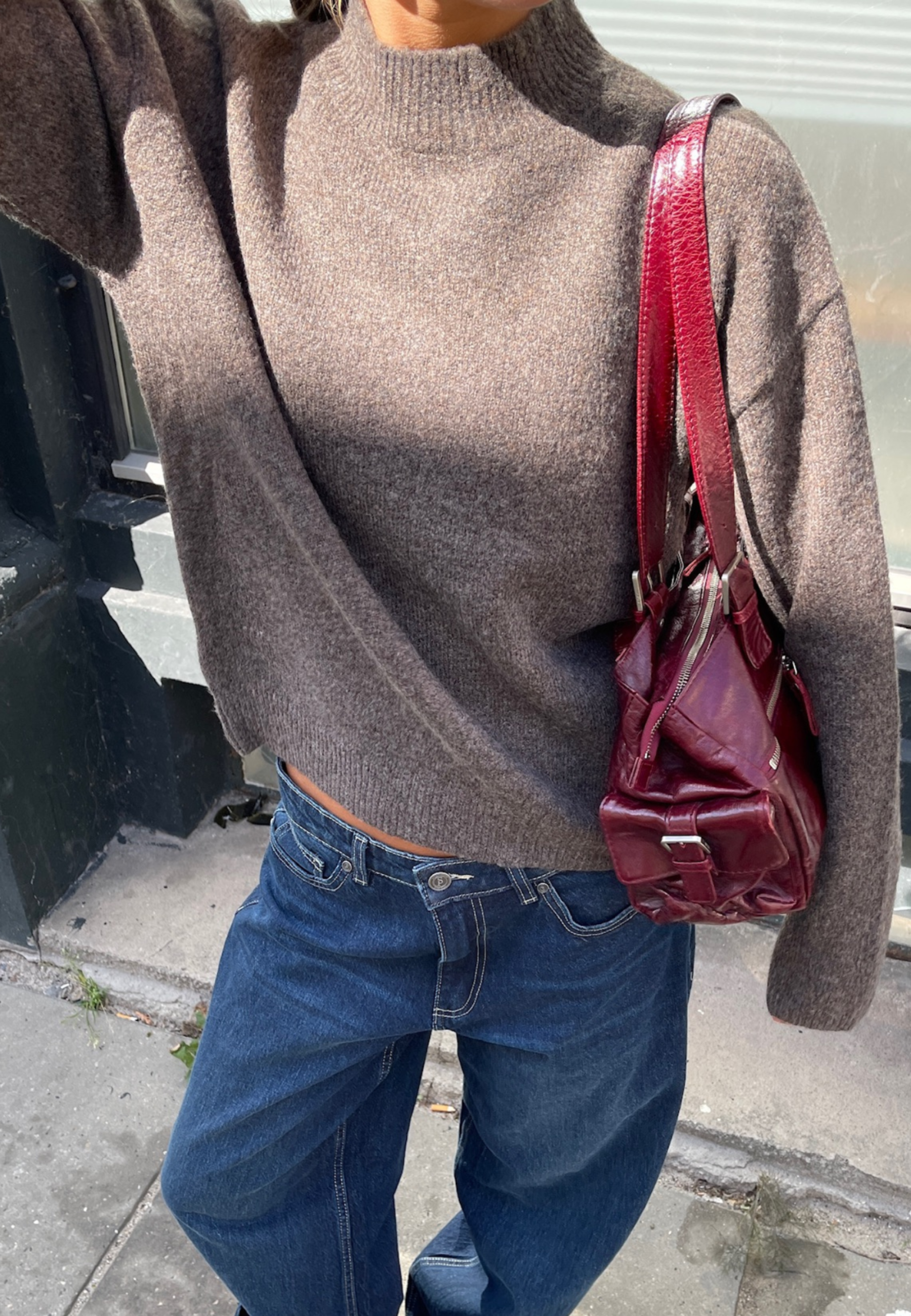 LUCA-PU er en strikket sweater med en høj krave og lange ærmer med raglanfacon, der giver en afslappet silhuet. Den har ribstrikkede kanter for en behagelig pasform. Modellen har en str. S på.