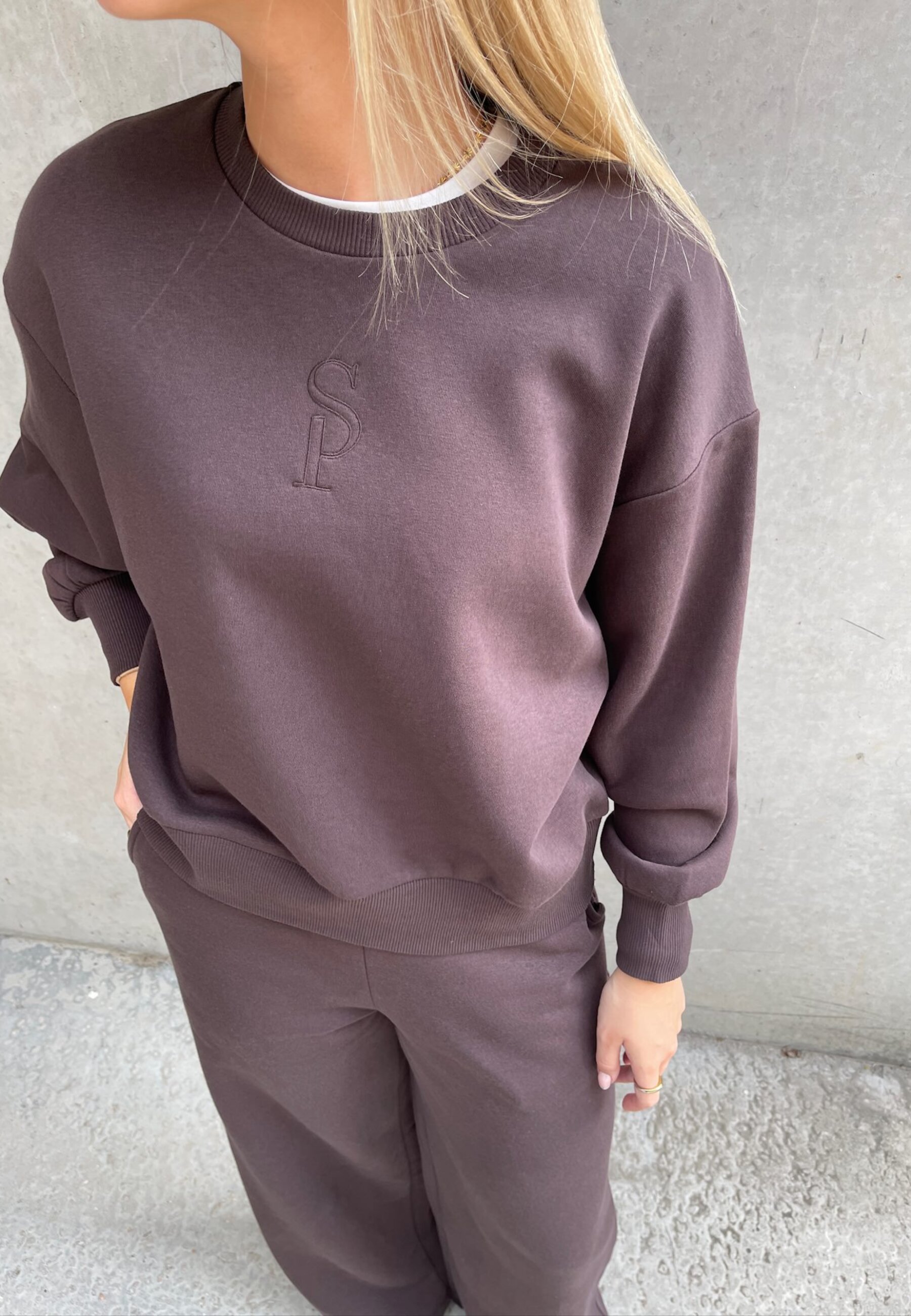 VEMIA-SW er en sweatshirt med lange ærmer og en rund halsudskæring. Den har en overdimensioneret pasform, ribkanter og en broderet detalje på brystet. Modellen har en str. 2 på. svarer til s/m.