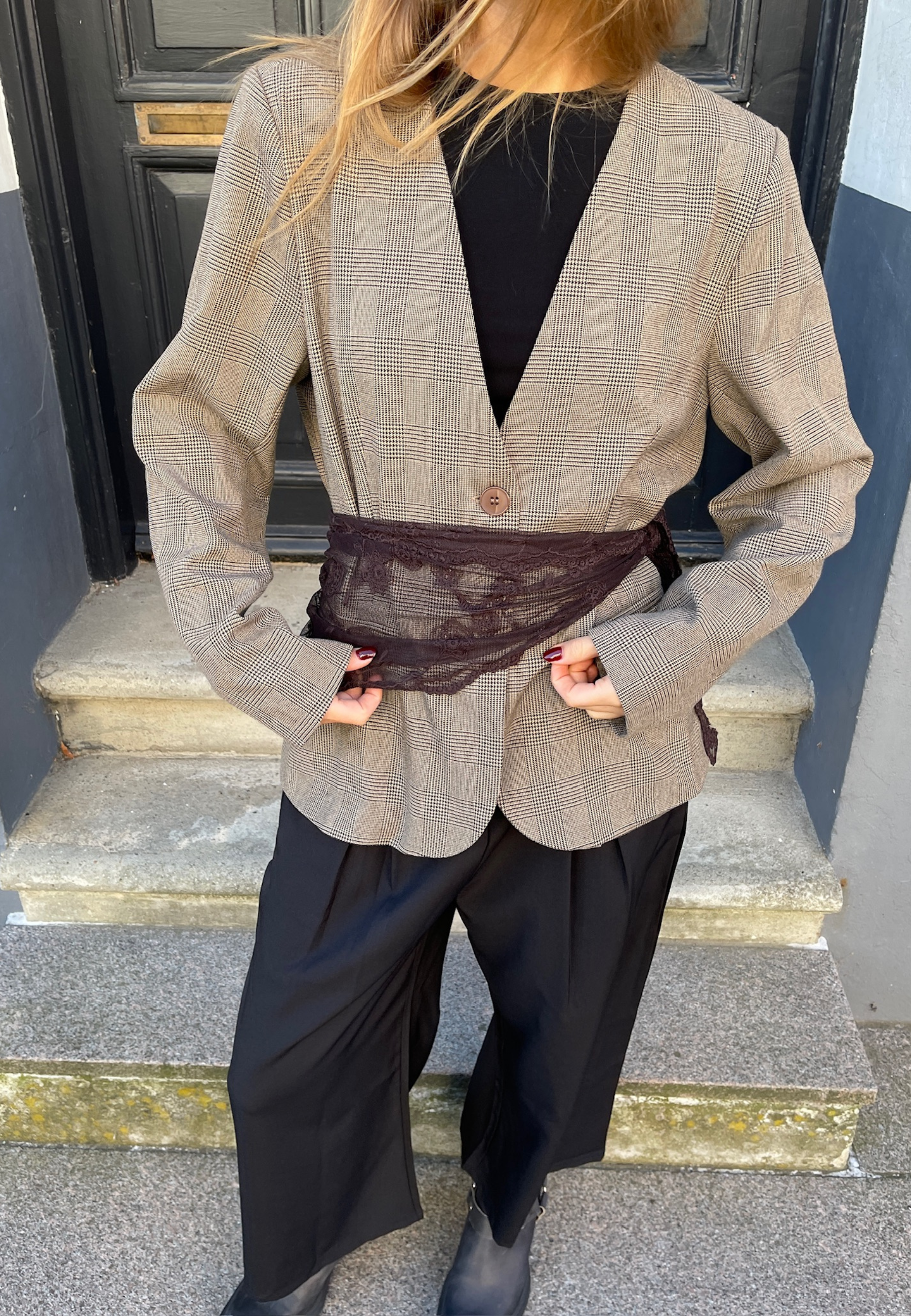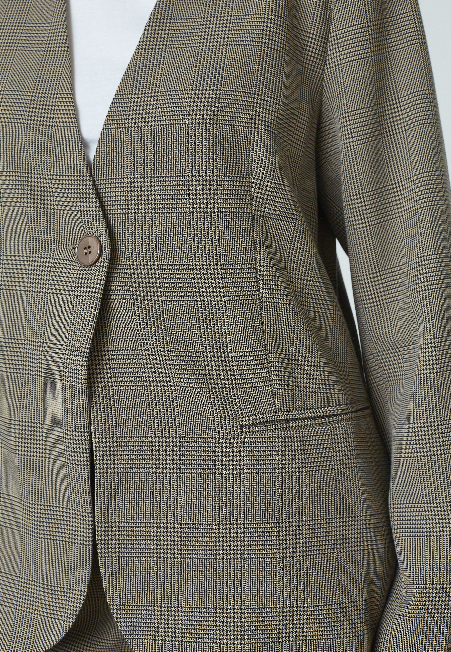 VILUNA-BL is a elegant and versatile blazer with a classic checkered pattern. Perfect for both everyday use and parties. Easy to combine with matching pants or jeans. The model wears size S.