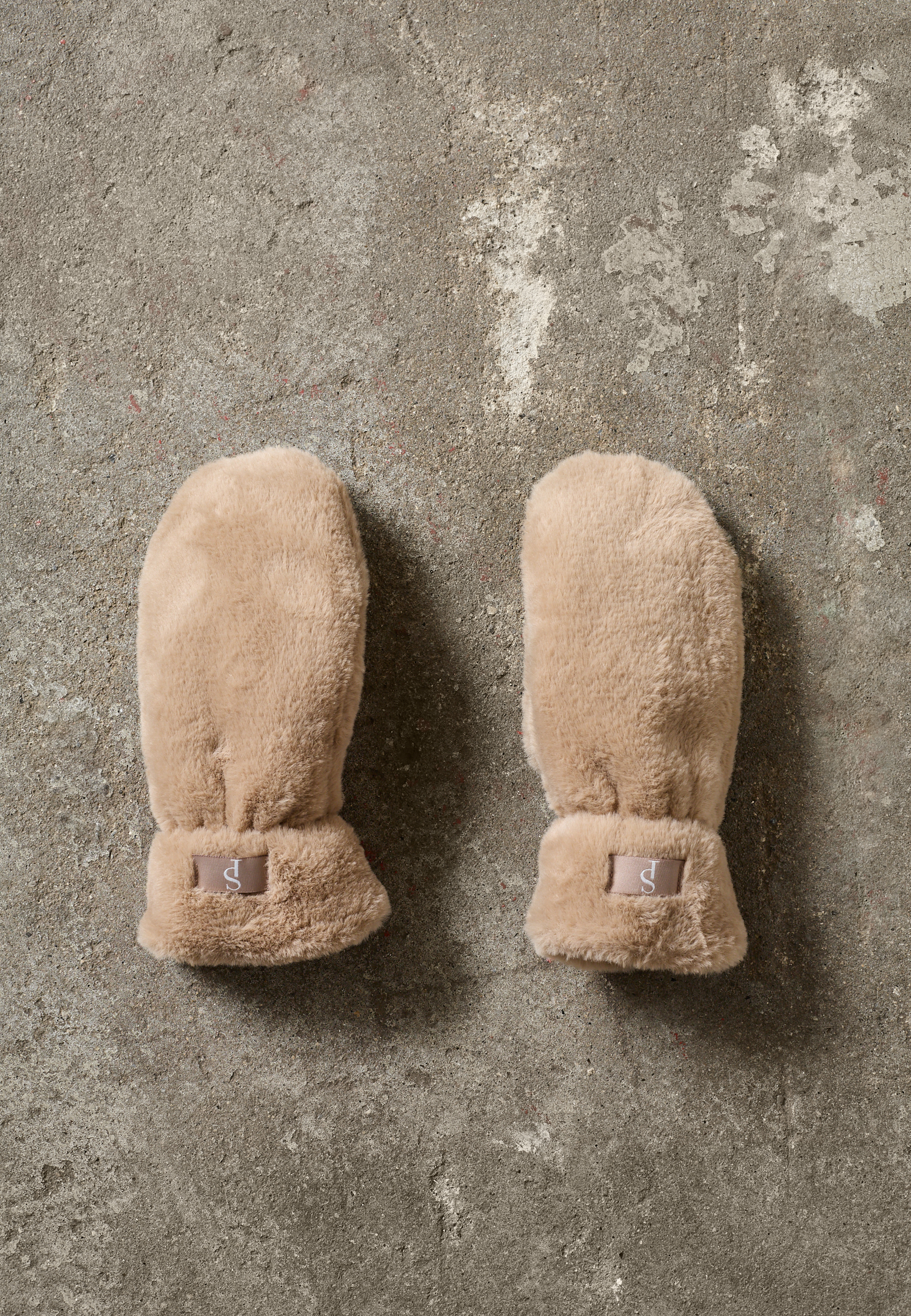 GLOVES-1 is a pair of gloves in a soft, furry material. They have a look with a turned edge and a thumb compartment. The glove is detailed with an SP logo. The model is one size