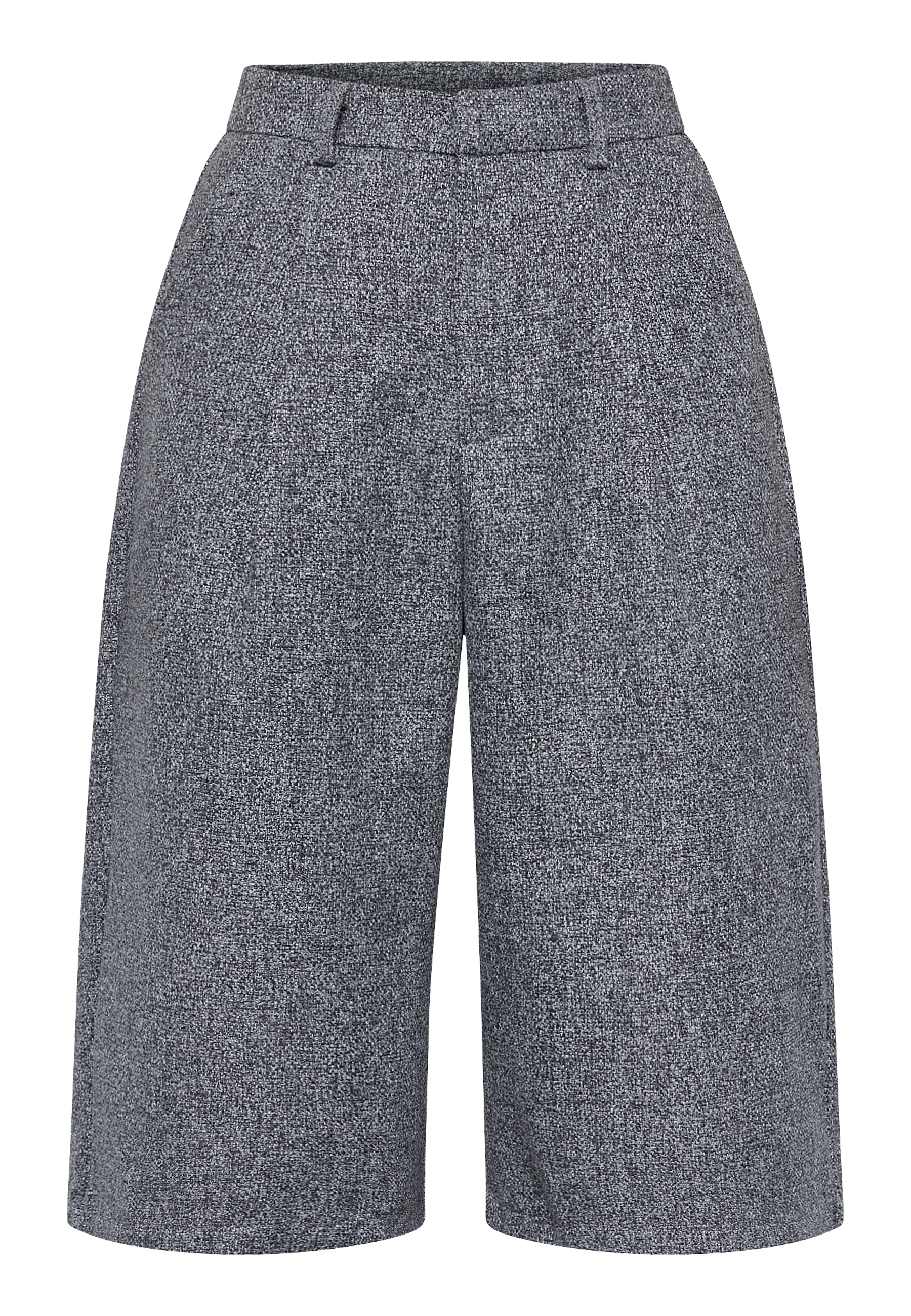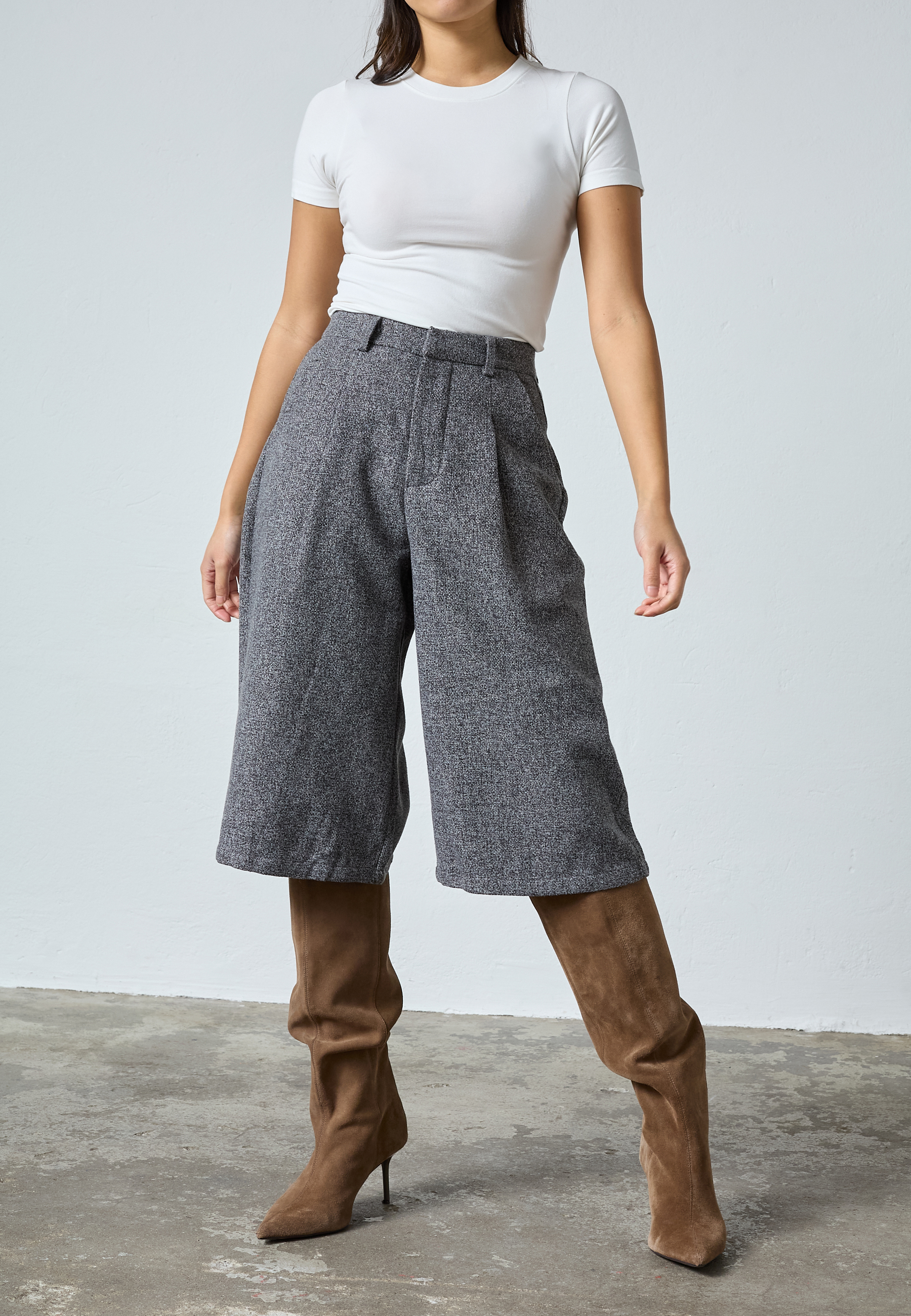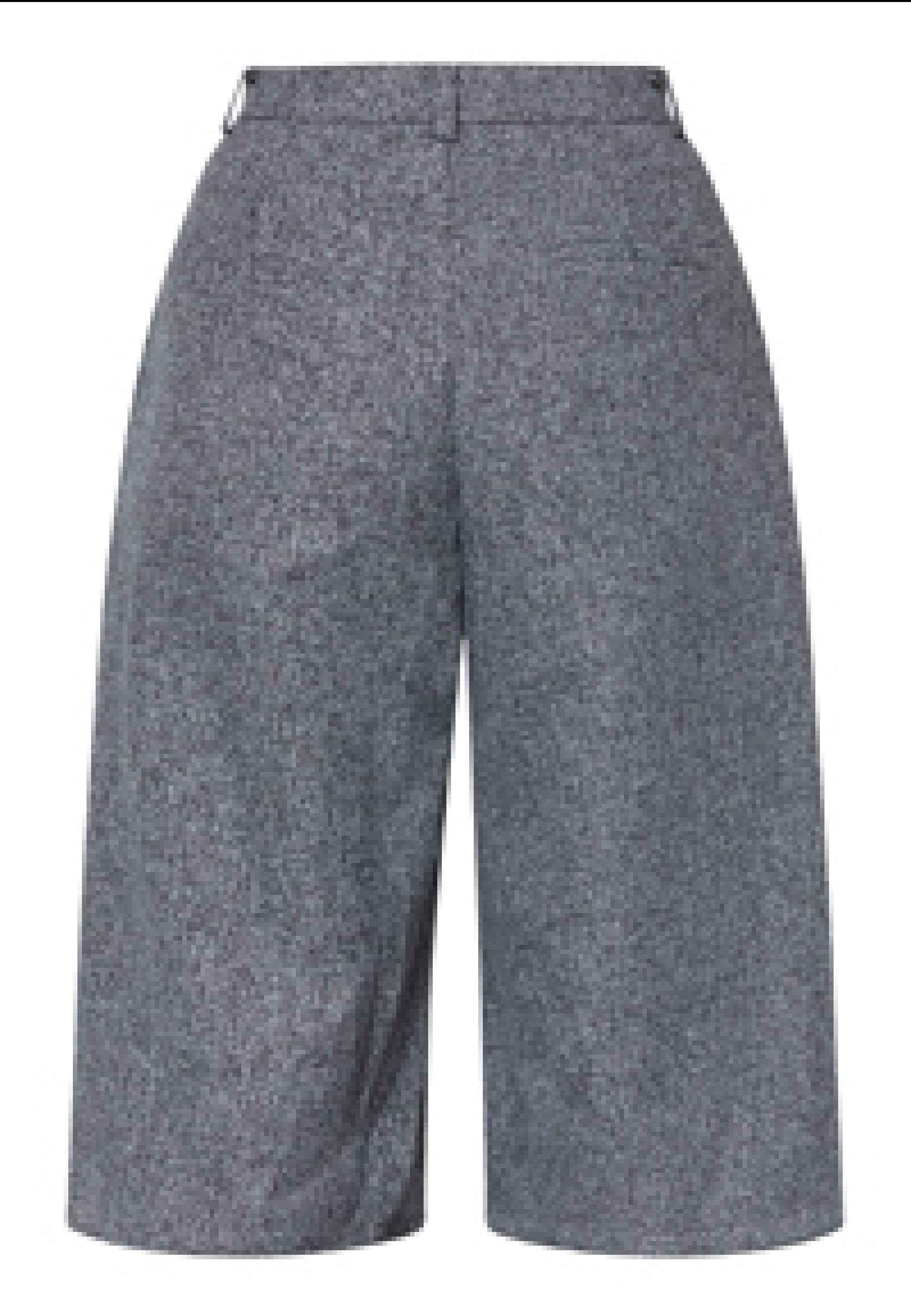 GREAT-L.SHO1 is a pair of culotte shorts with a loose fit to just above the knee, pleats at the front and side pockets. The model is wearing size S