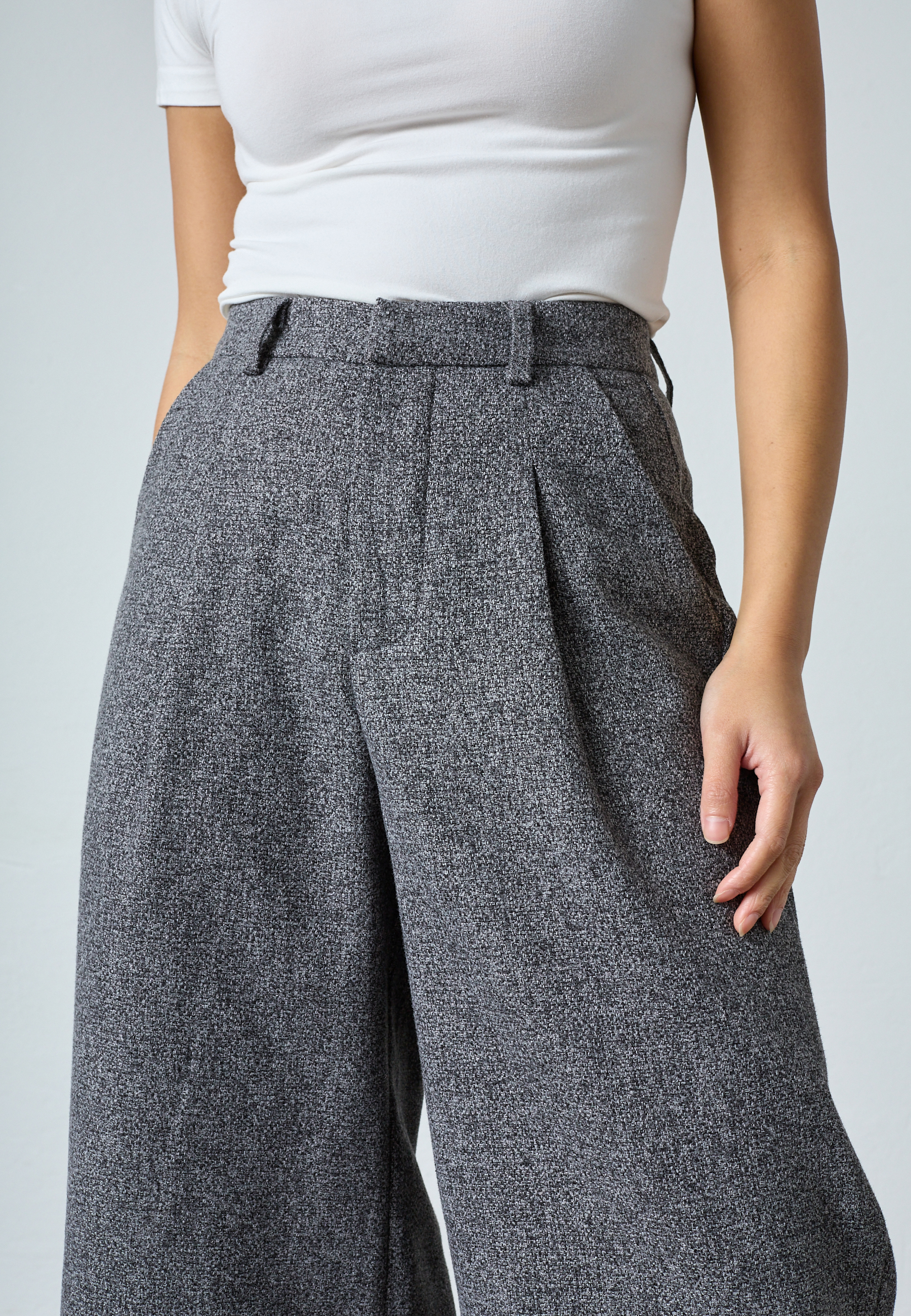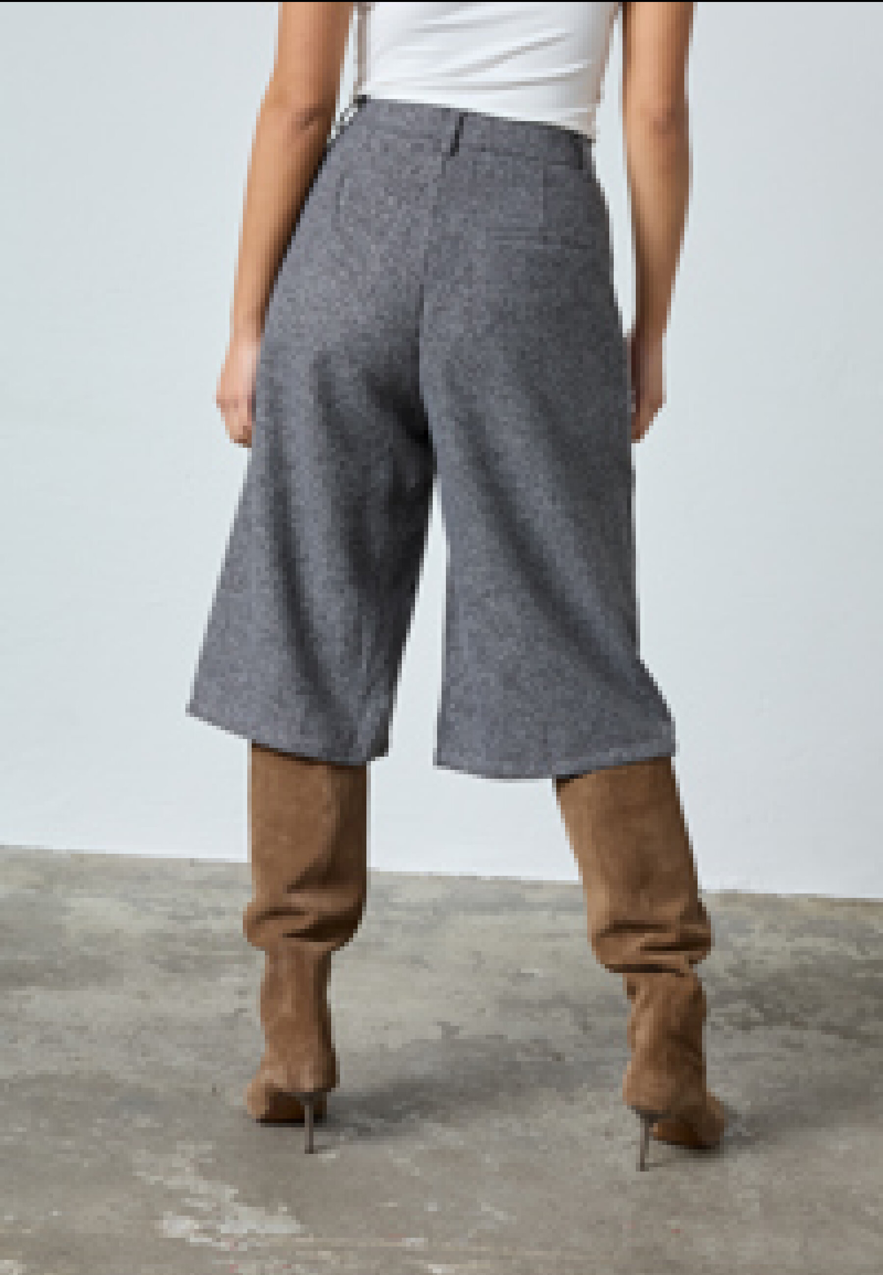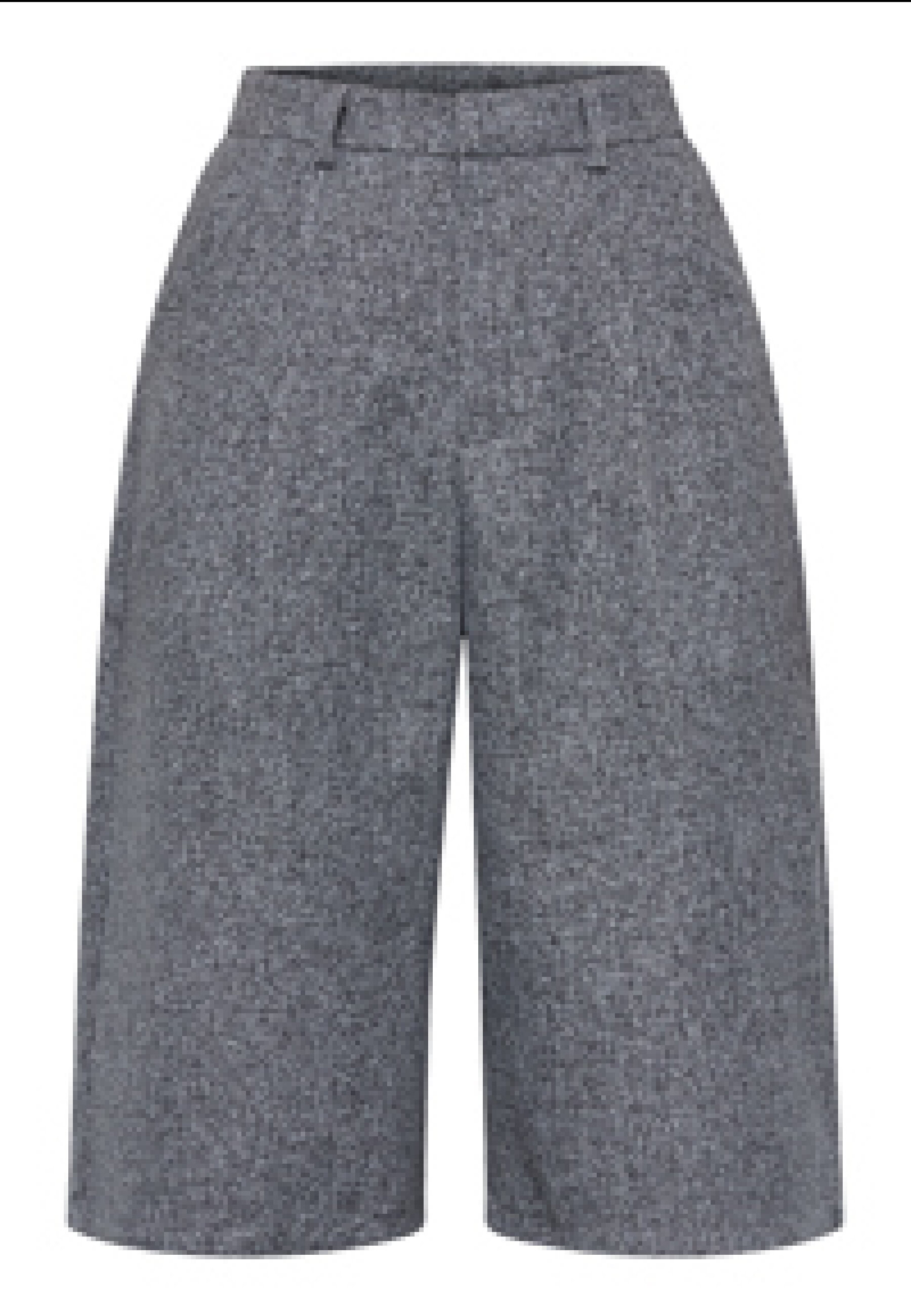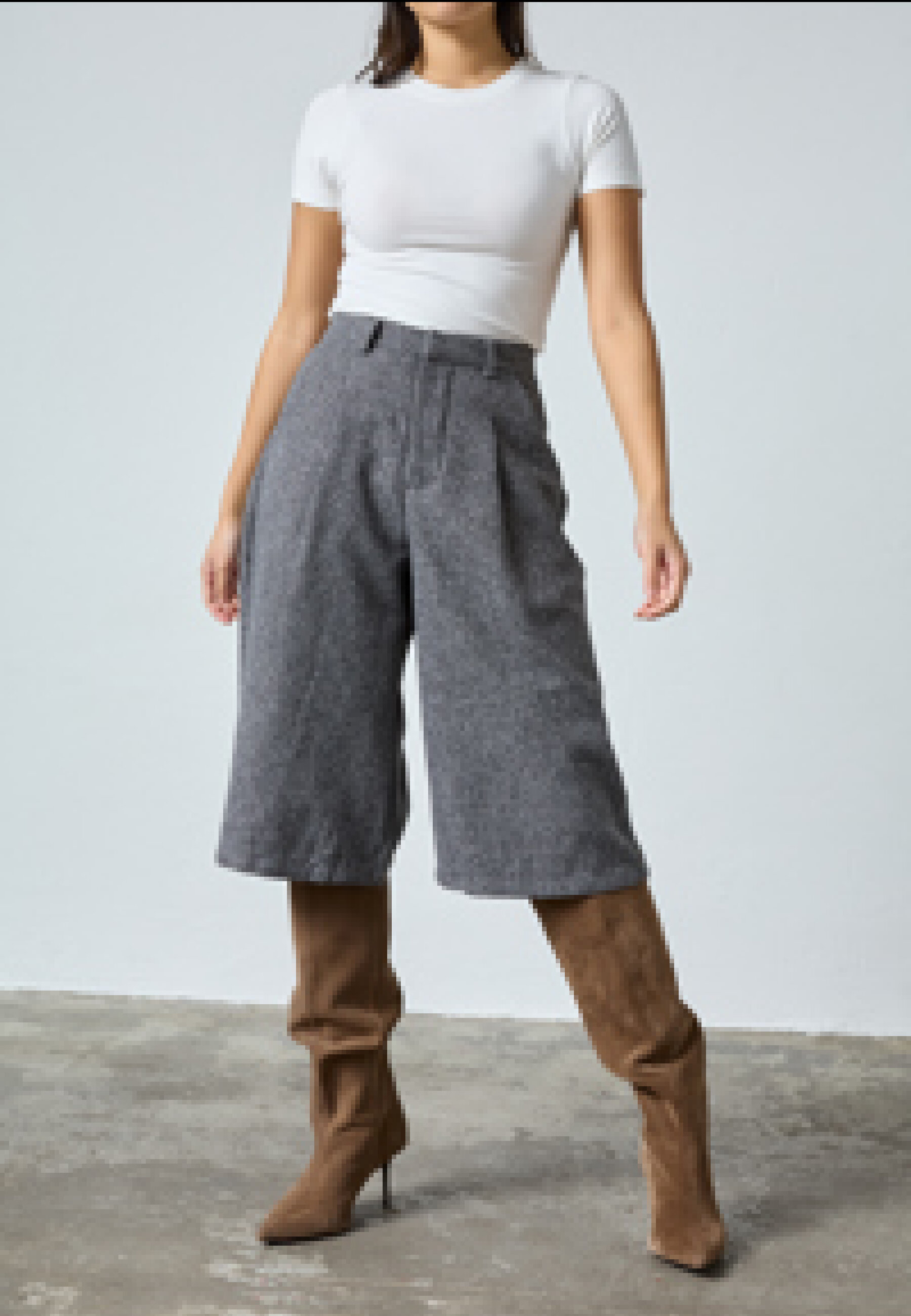 GREAT-L.SHO1 is a pair of culotte shorts with a loose fit to just above the knee, pleats at the front and side pockets. The model is wearing size S