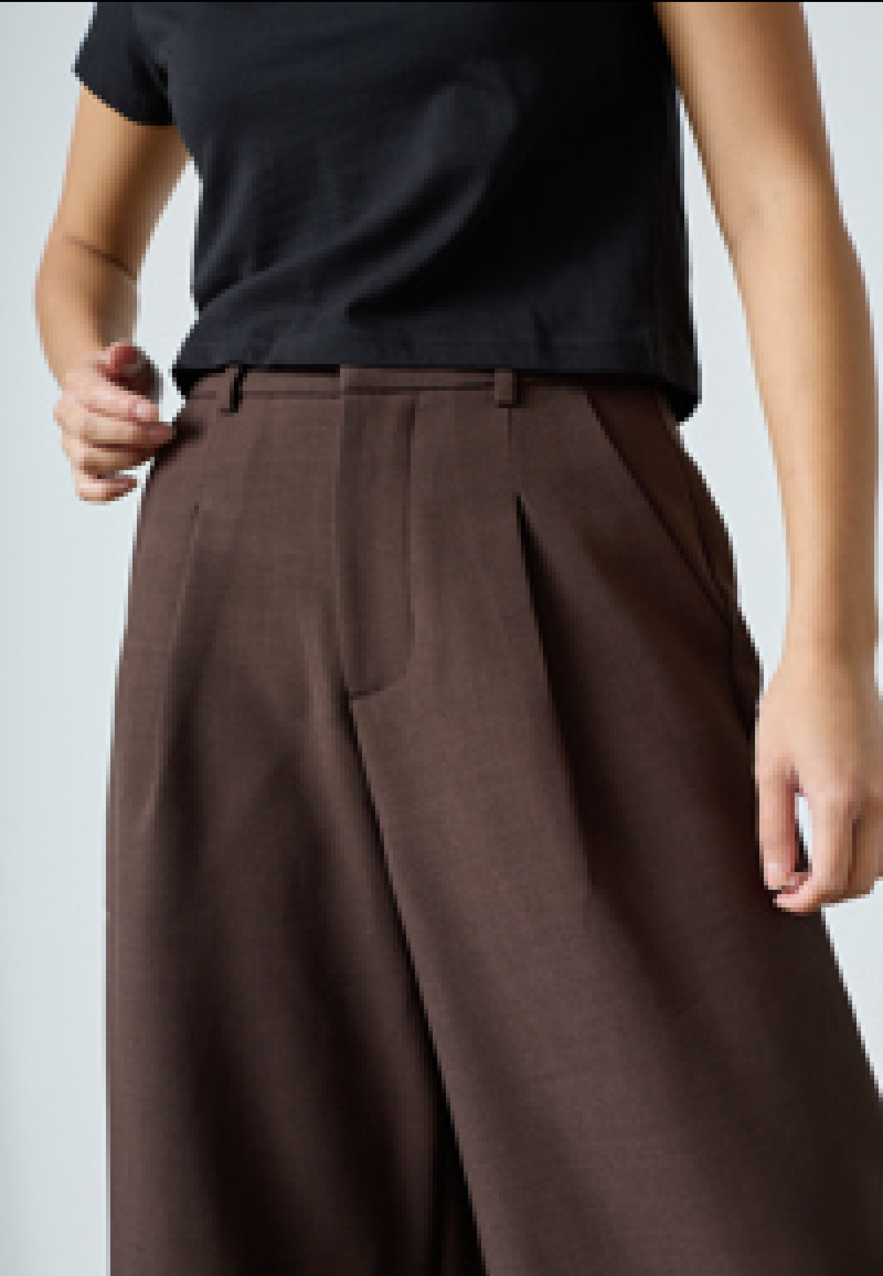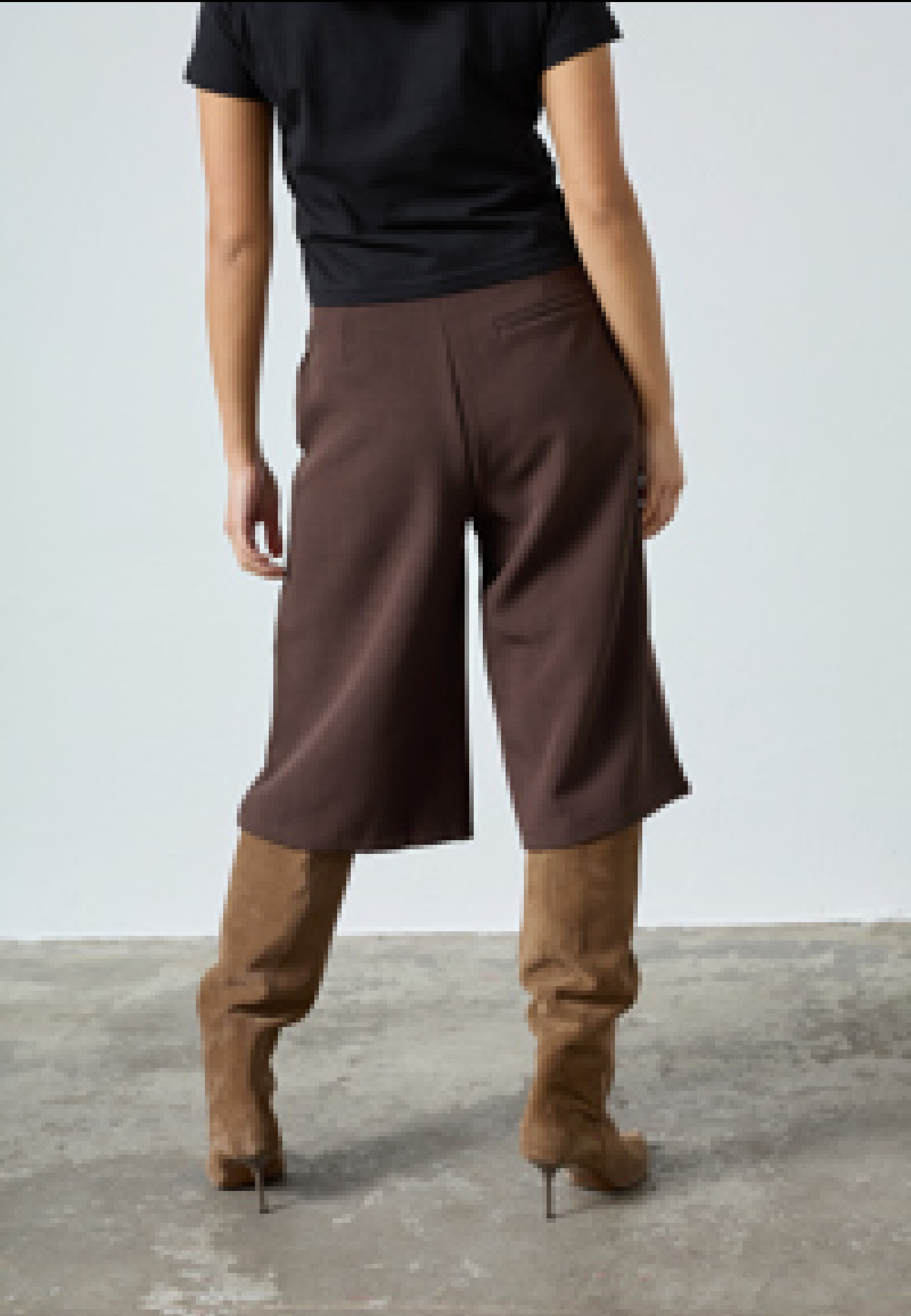 GREAT-L.SHO2 is a pair of culotte shorts with a loose fit to just above the knee, pleats at the front and side pockets. The model is wearing size S