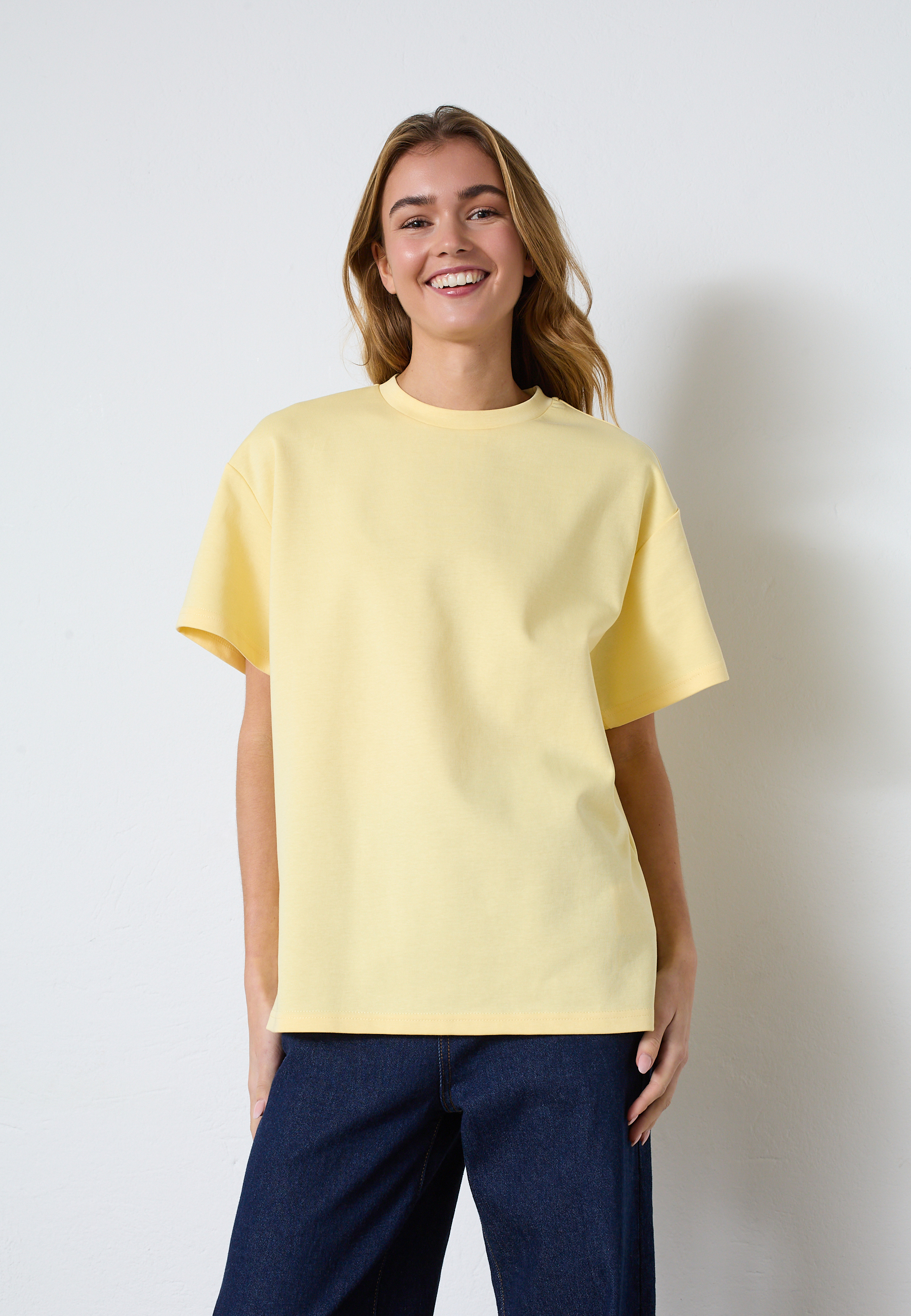 VEDA-SS is an oversized t-shirt with a modern box fit. Designed in heavy cotton with a classic crewneck and loose sleeves for a cool streetwear look. The model is wearing a size S.