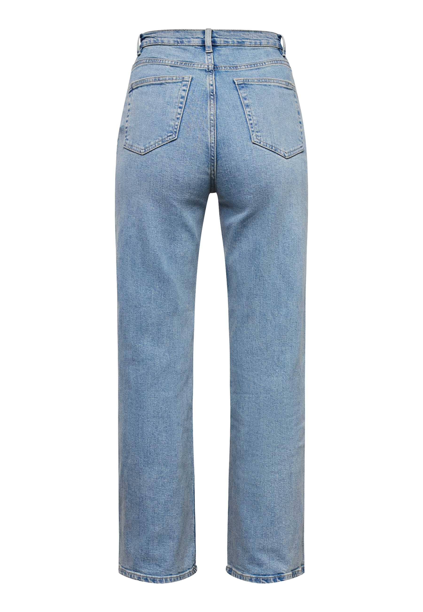 OWI-W.JE17 are a pair of classic jeans. The pants have a high waist and a straight leg fit that gives a timeless look. They have traditional five pockets and button closure. The model is wearing a size S and is 175 cm tall.