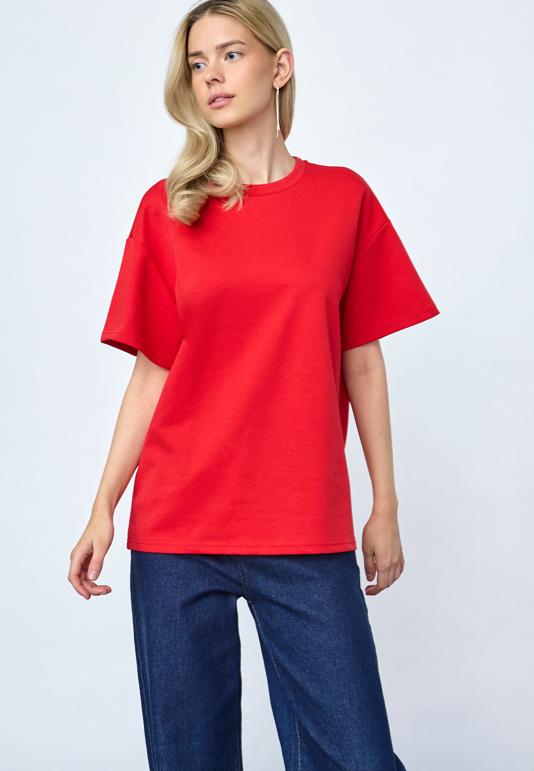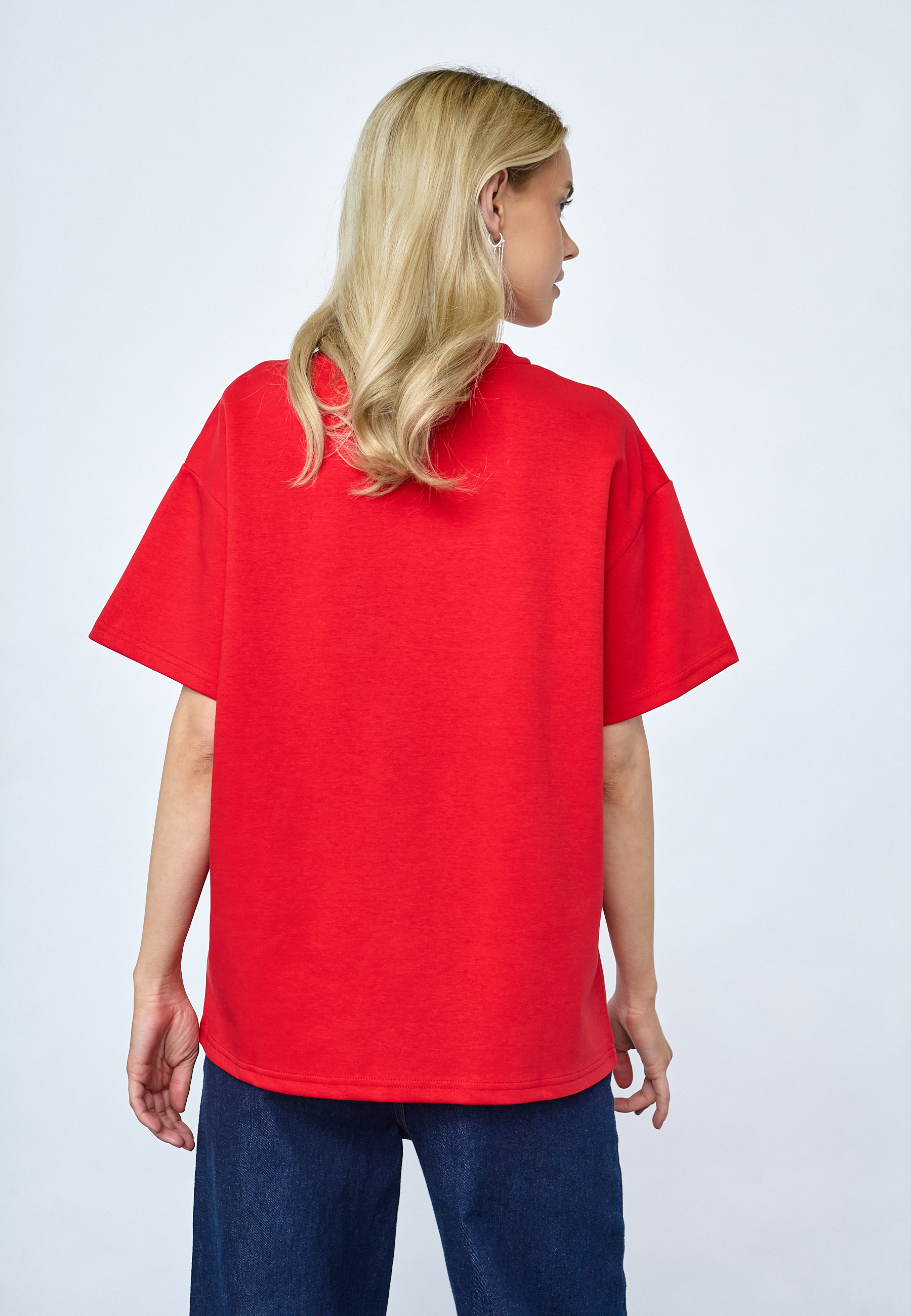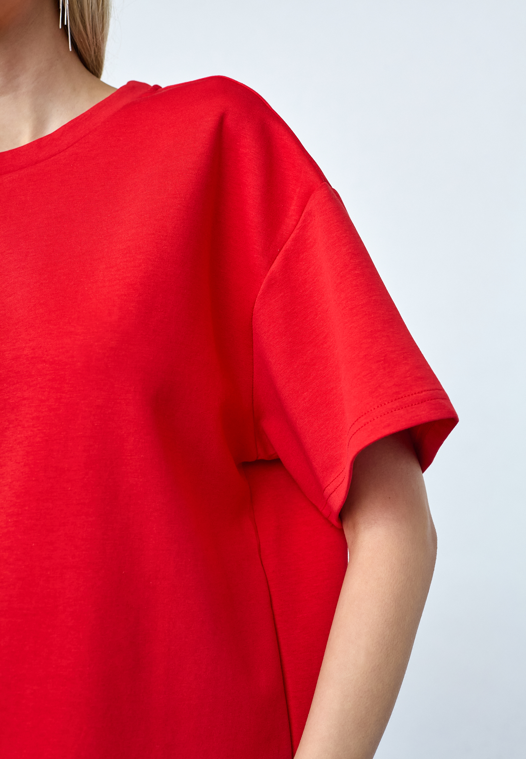 VEDA-SS is an oversized t-shirt with a modern box fit. Designed in heavy cotton with a classic crewneck and loose sleeves for a cool streetwear look. The model is wearing a size S.
