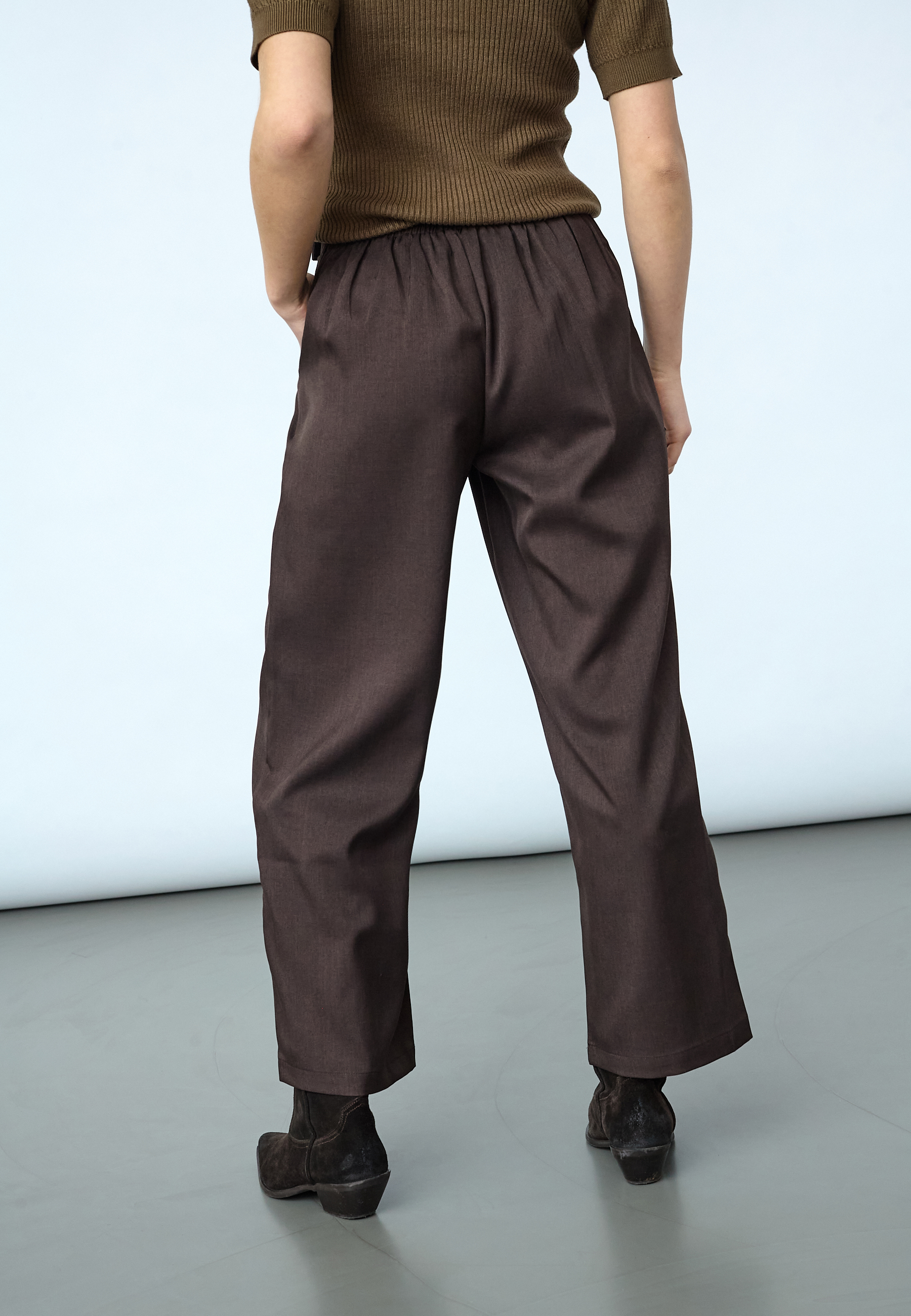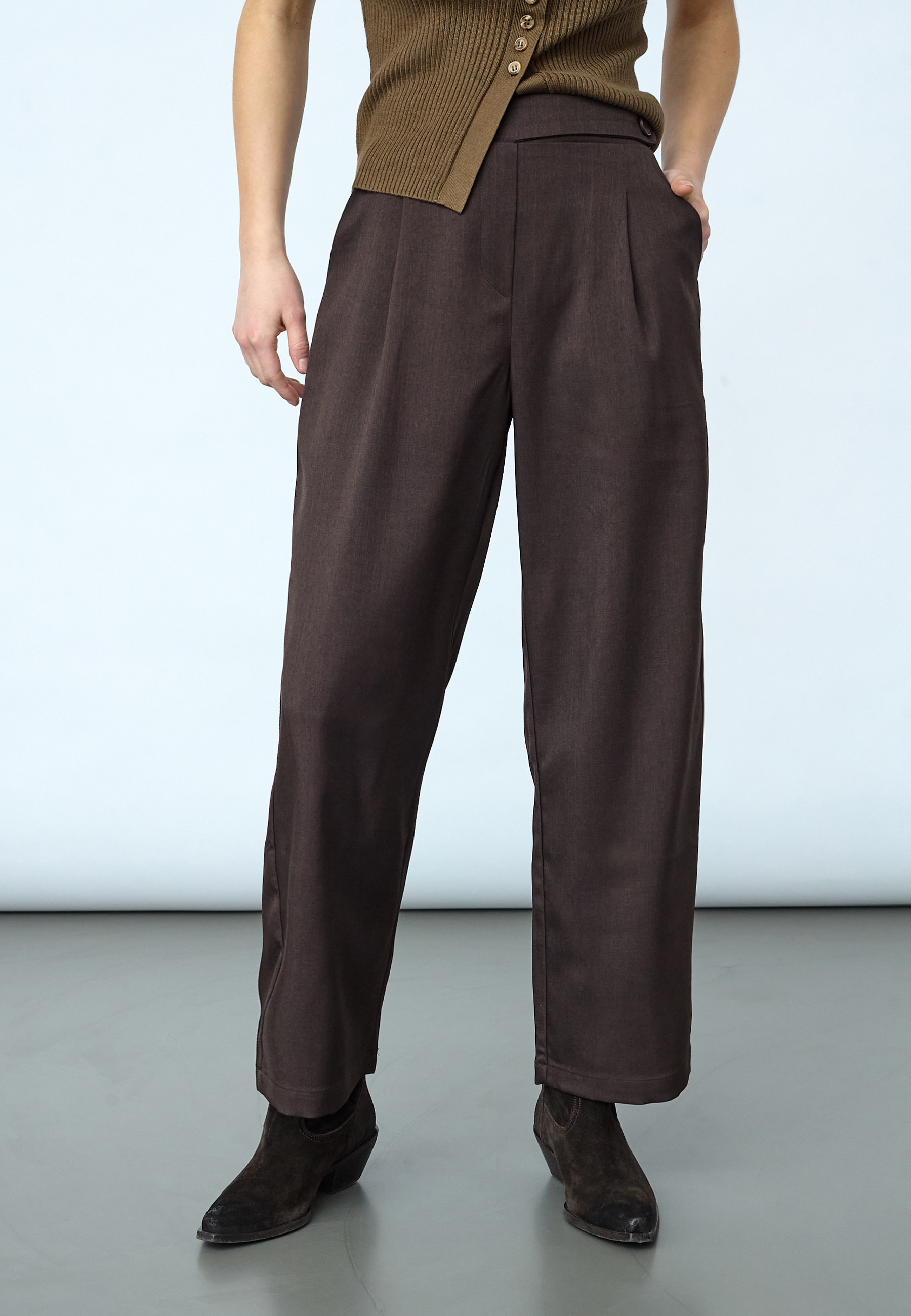 VIKSA-PA.CROP is a culotte pant, with a tailored look and modern comfort. The design includes pleats at the front, practical side pockets and a decorative button detail at the waist. The model is wearing a size S and is 175 cm tall.