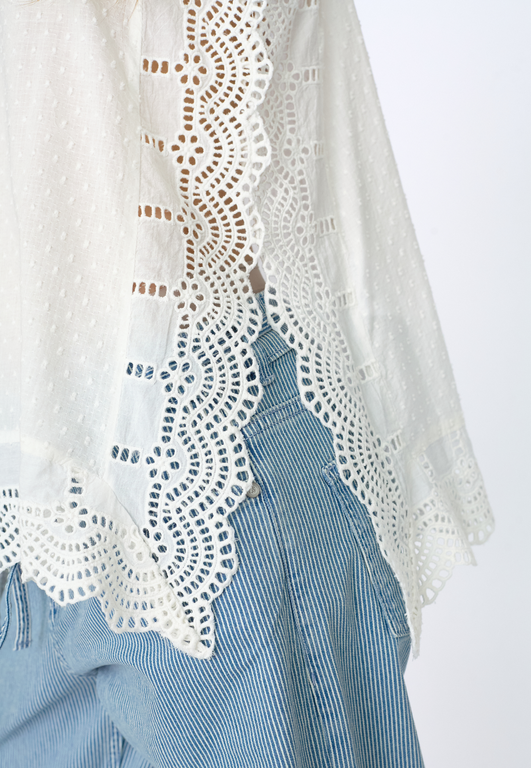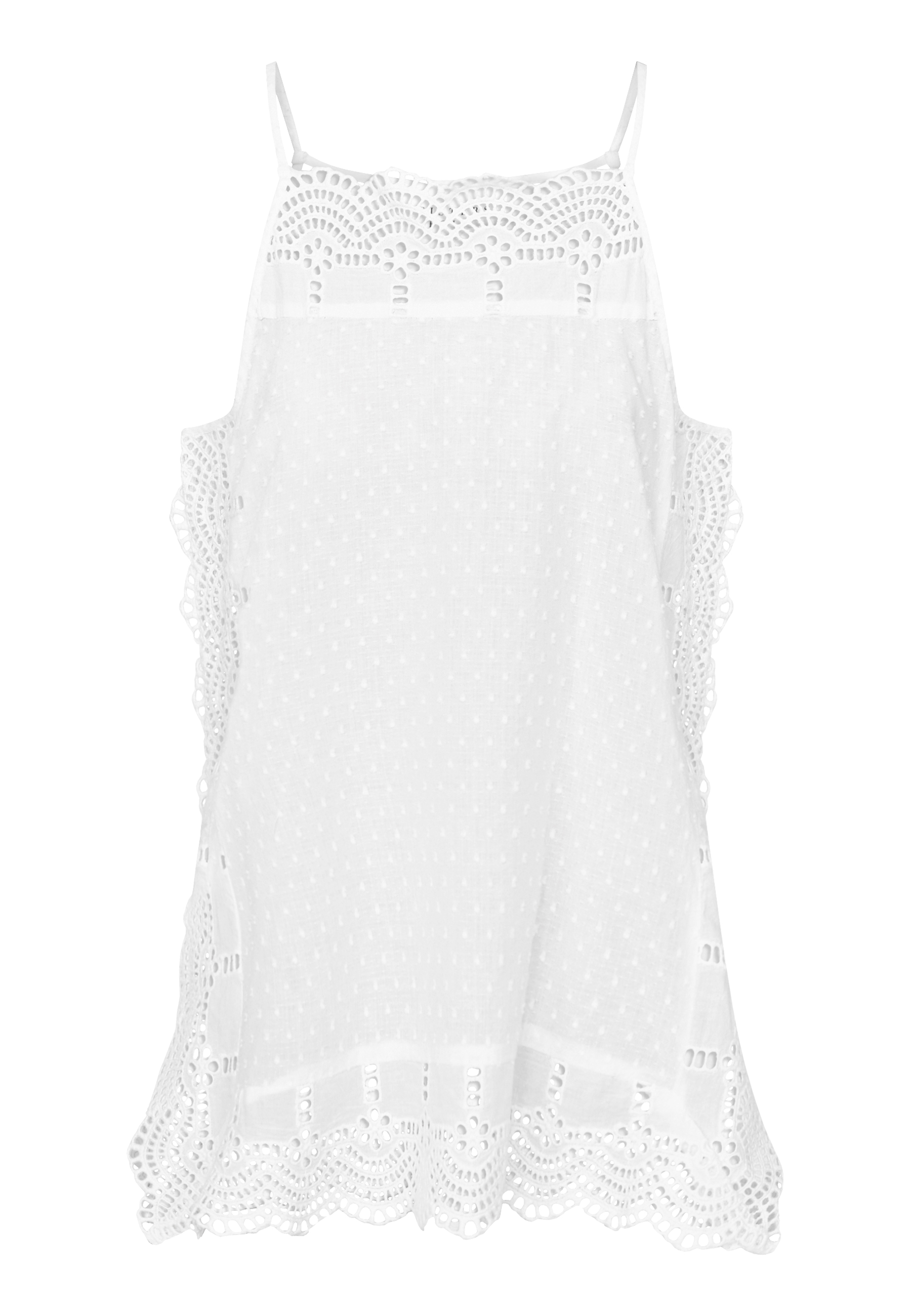 IRIS-ST is a nice tank top, with broderie anglaise details. It has a slit in the side. The model is wearing a size S