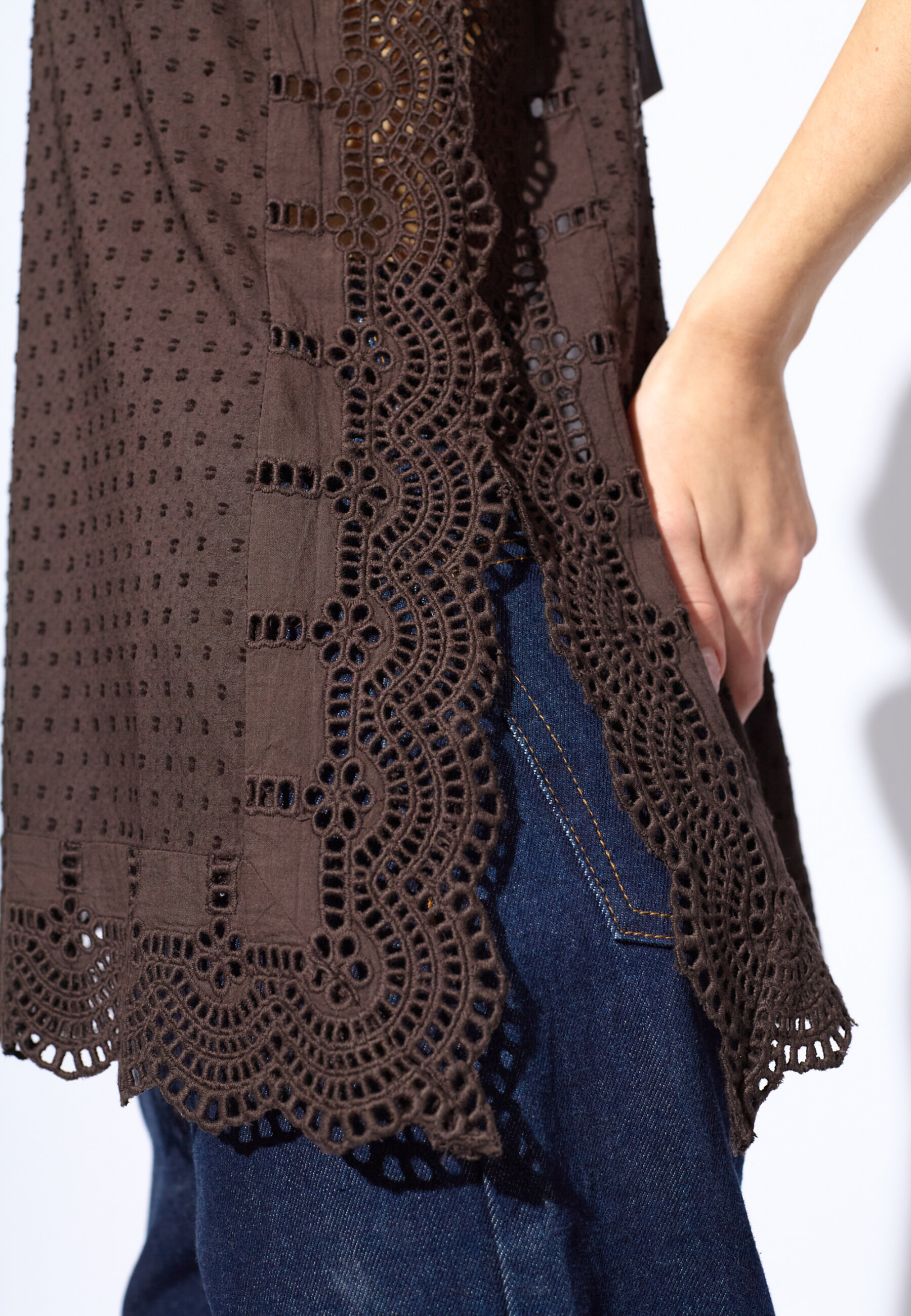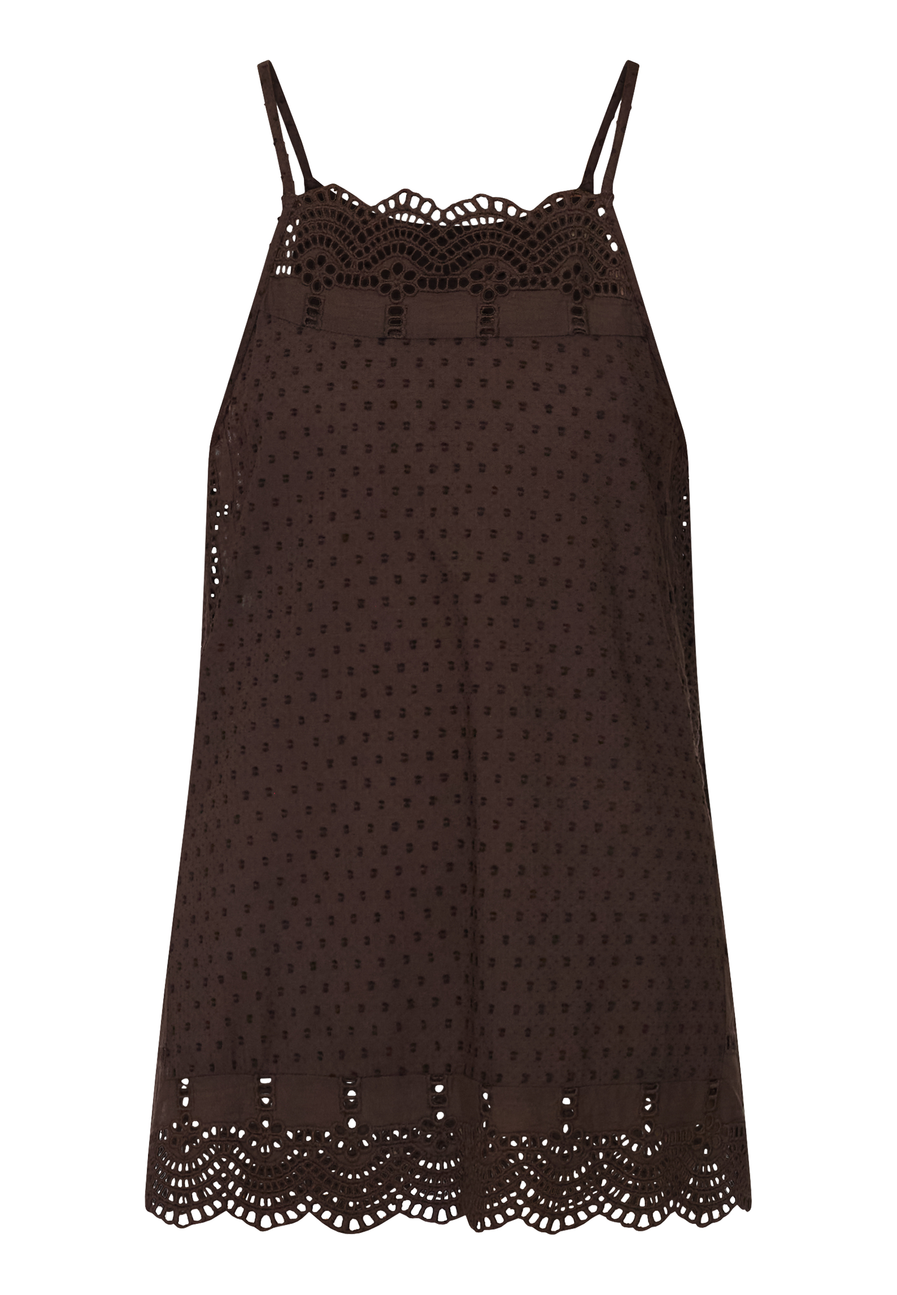IRIS-ST is a nice tank top, with broderie anglaise details. It has a slit in the side. The model is wearing a size S