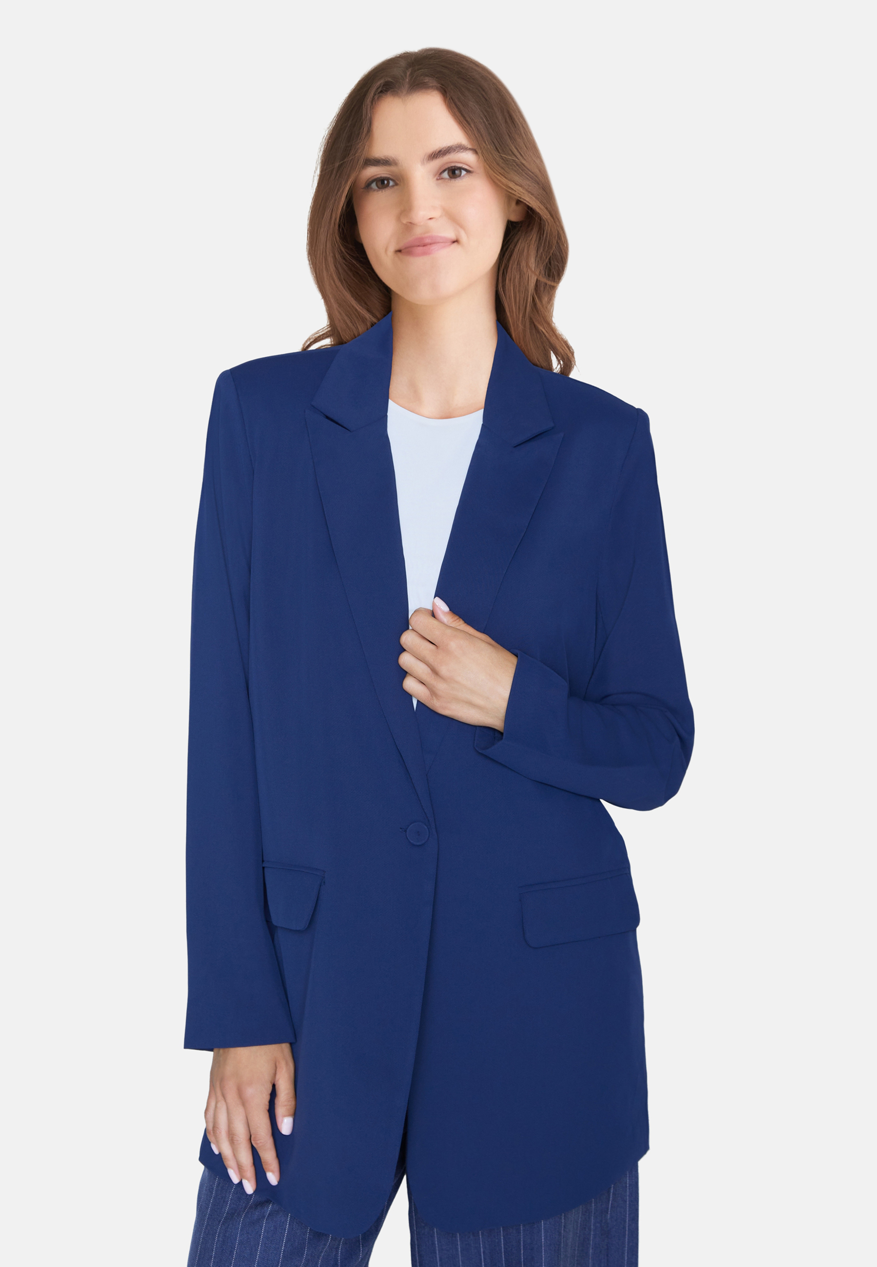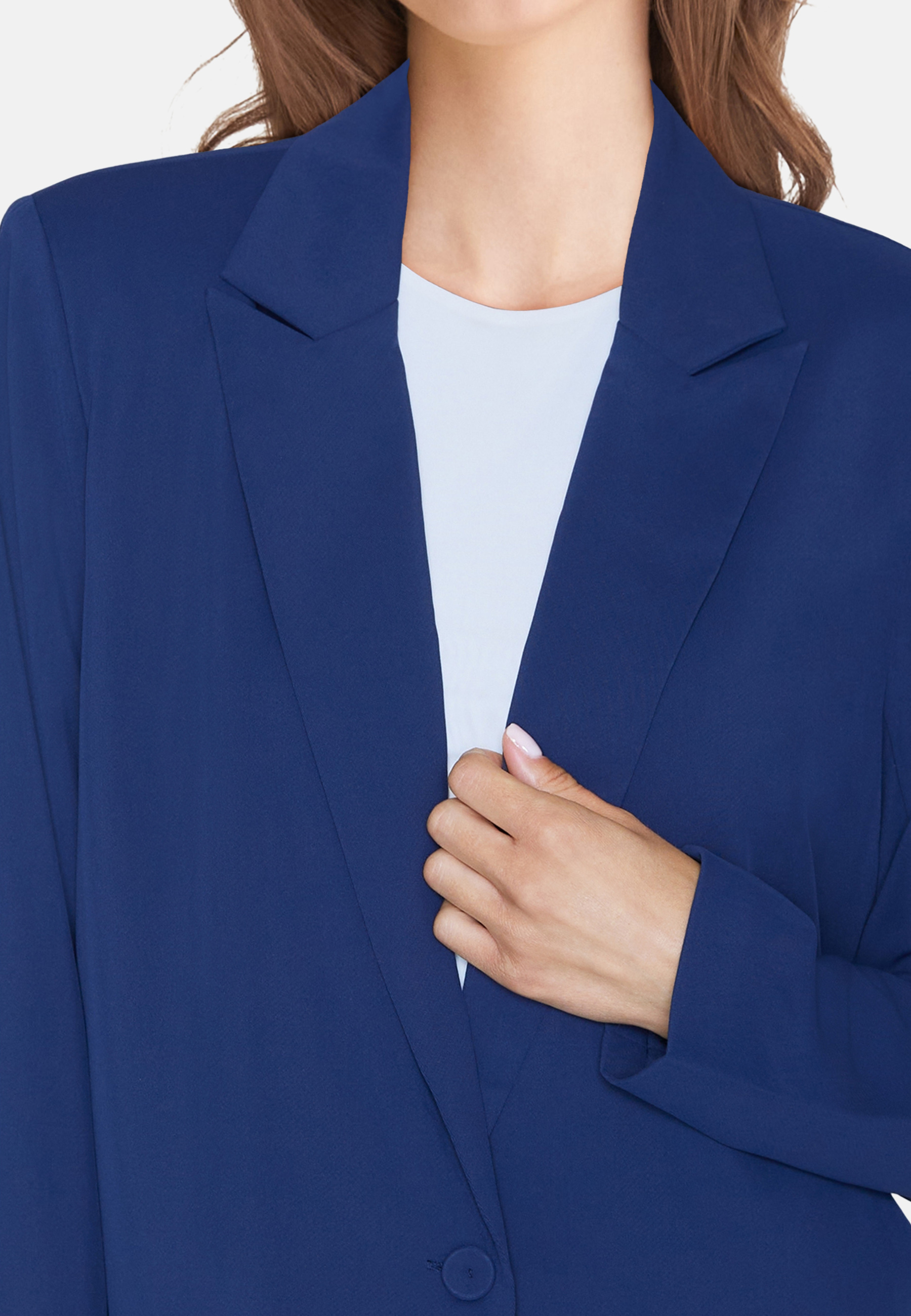 VAGNA-BL3 is a plain and loose-fitted blazer with long sleeves and a button closure. The blazer has a pocket on each side.