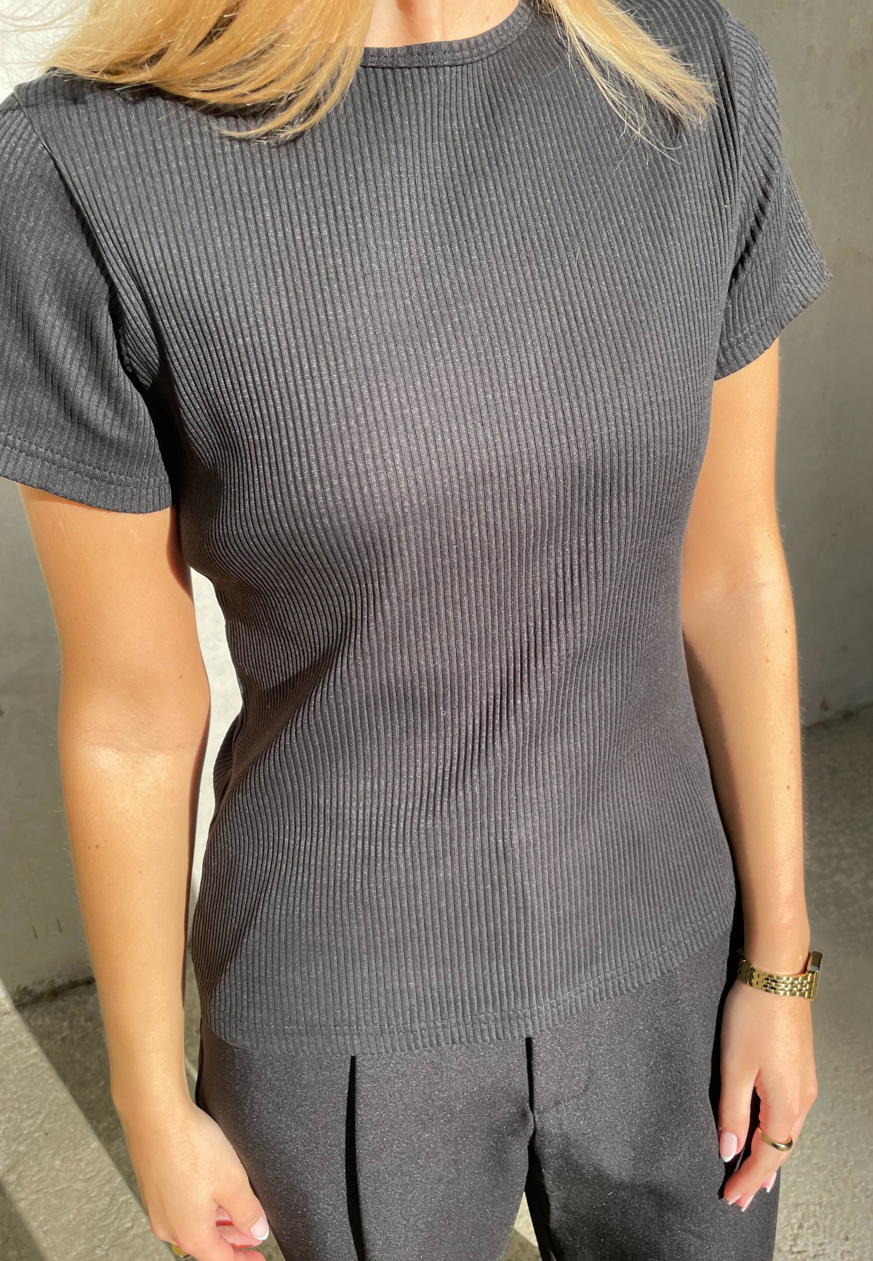 EIKE-SS is a classic slim-fit t-shirt with short sleeves. It's in rib and comes with a round neck. The model is 178,5 cm and wears a size S.