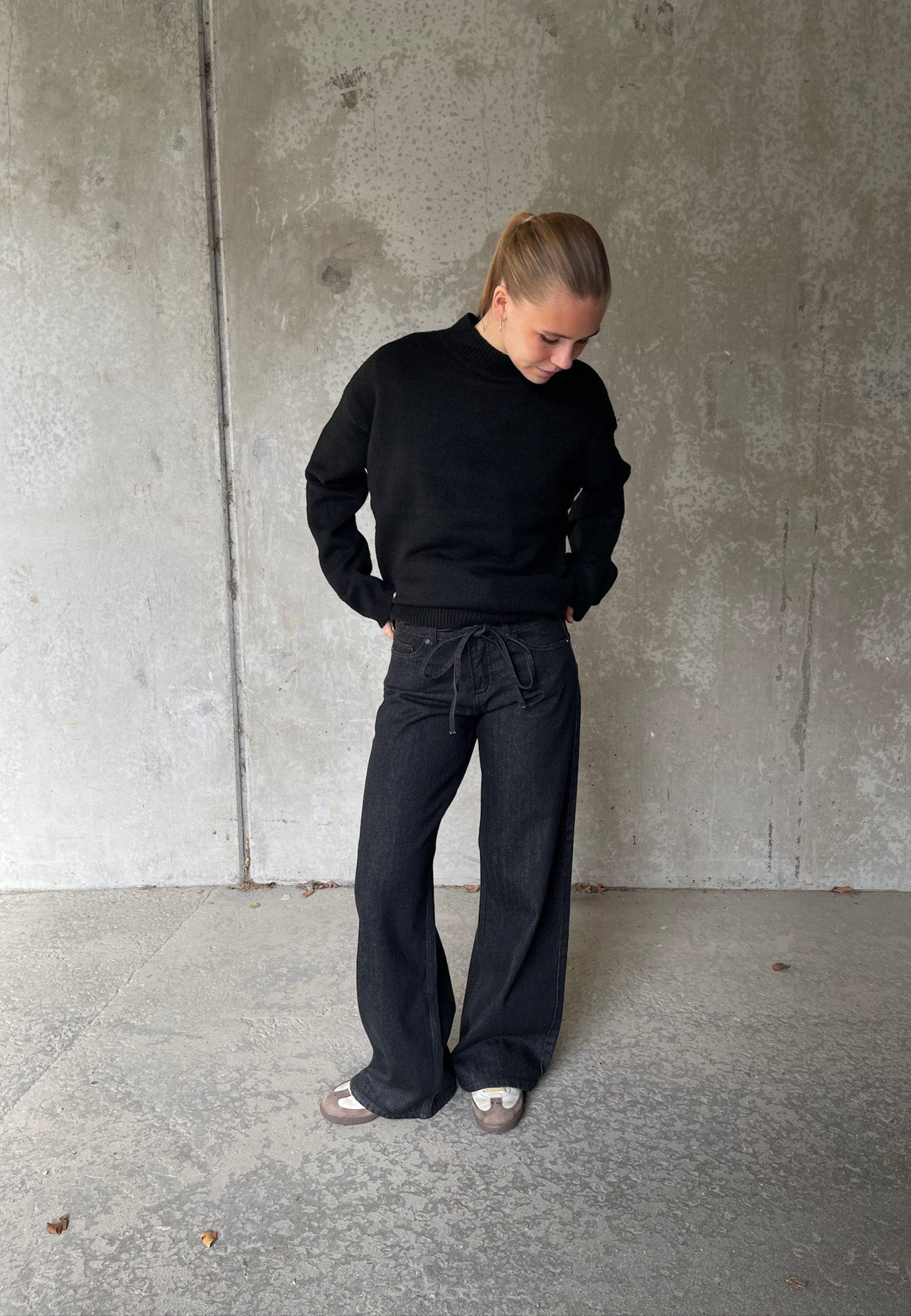 ONEA-BELT.JE7 is a denim pant with wide legs and a removable denim belt at the waist. The model is wearing a size S and is 171 cm tall.