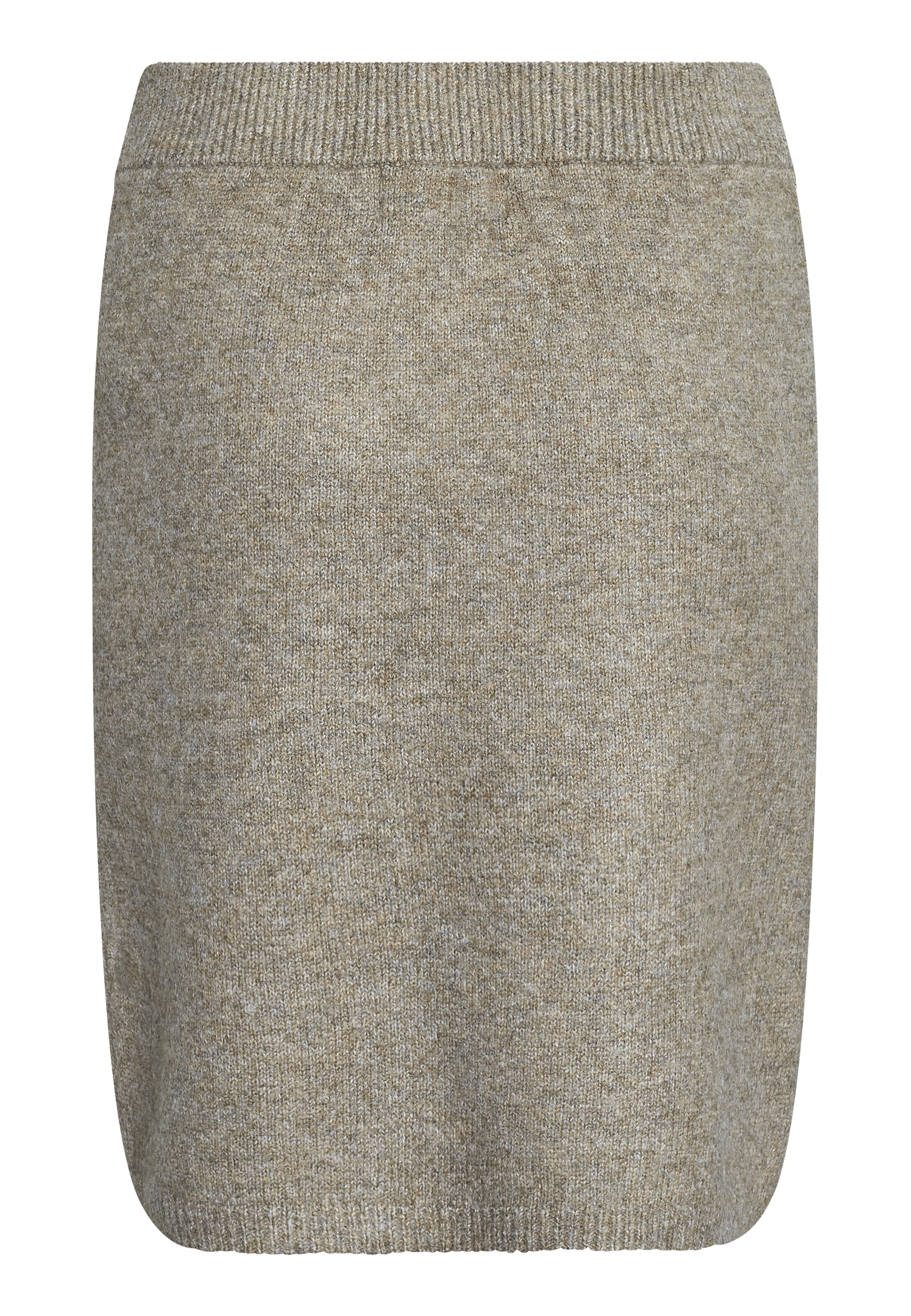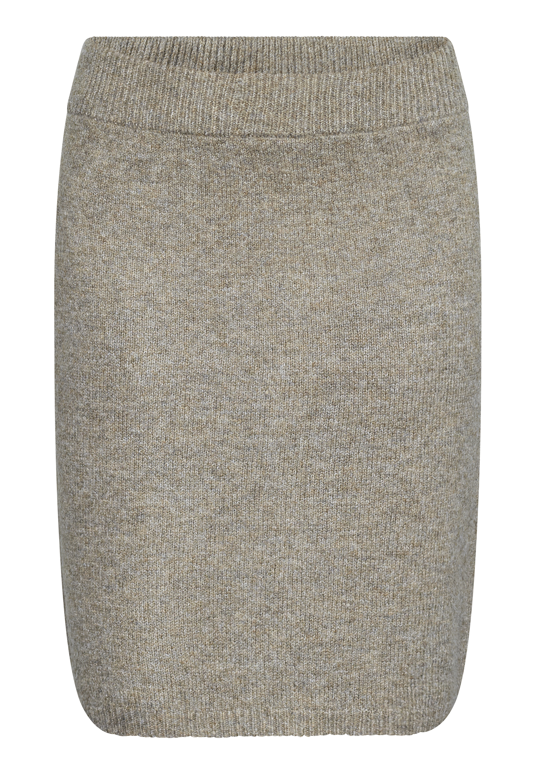 LUCA-SK is a knitted mini skirt with a wide, ribbed elastic waistband for optimal comfort. It features a fitted silhouette and a clean, minimalistic design. The model is wearing a size S.