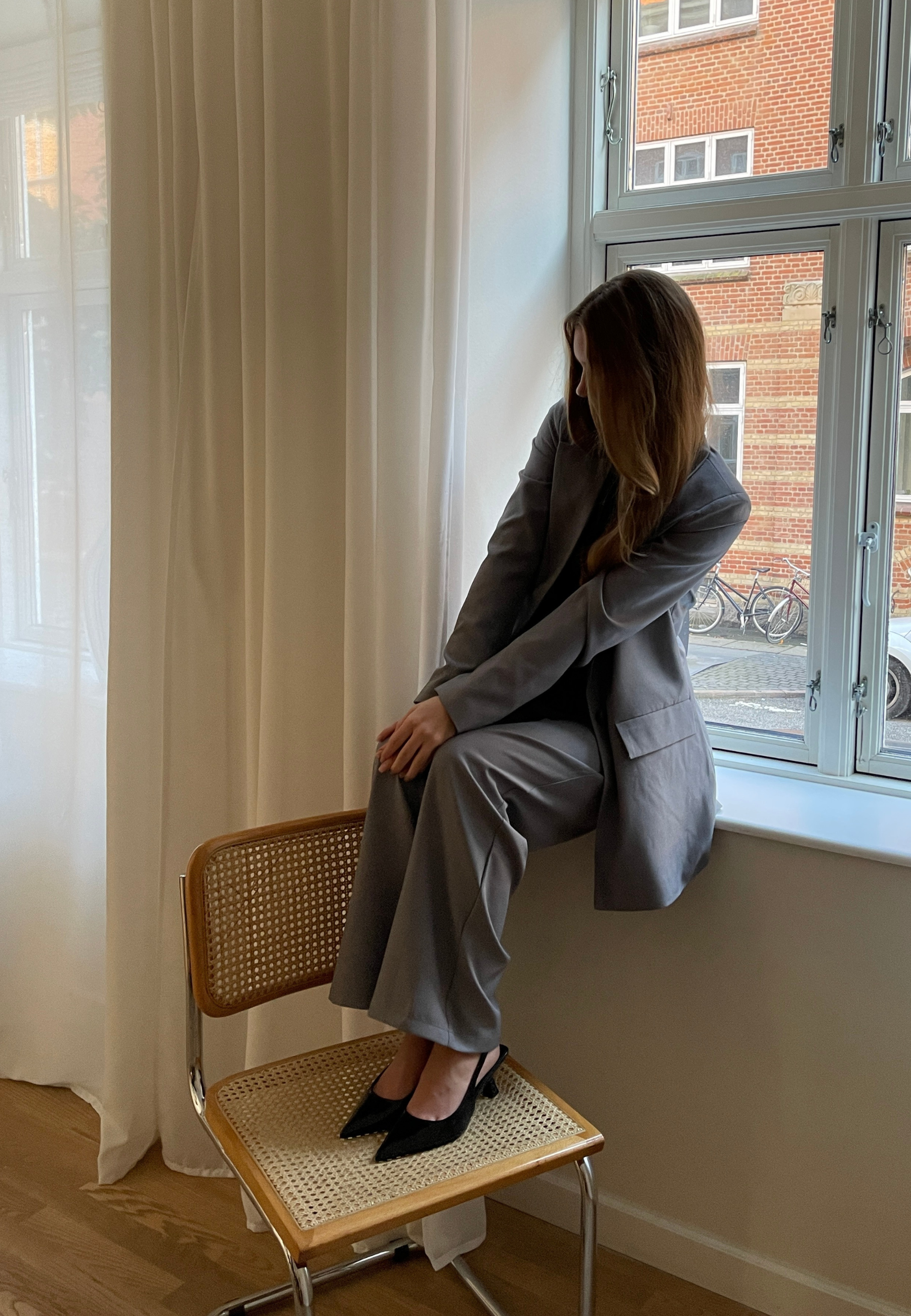 VIKSA-PA are a pair of classic trousers with wide legs. The trousers have pleats in the front and a simple and stylish expression. The model is wearing a size S.